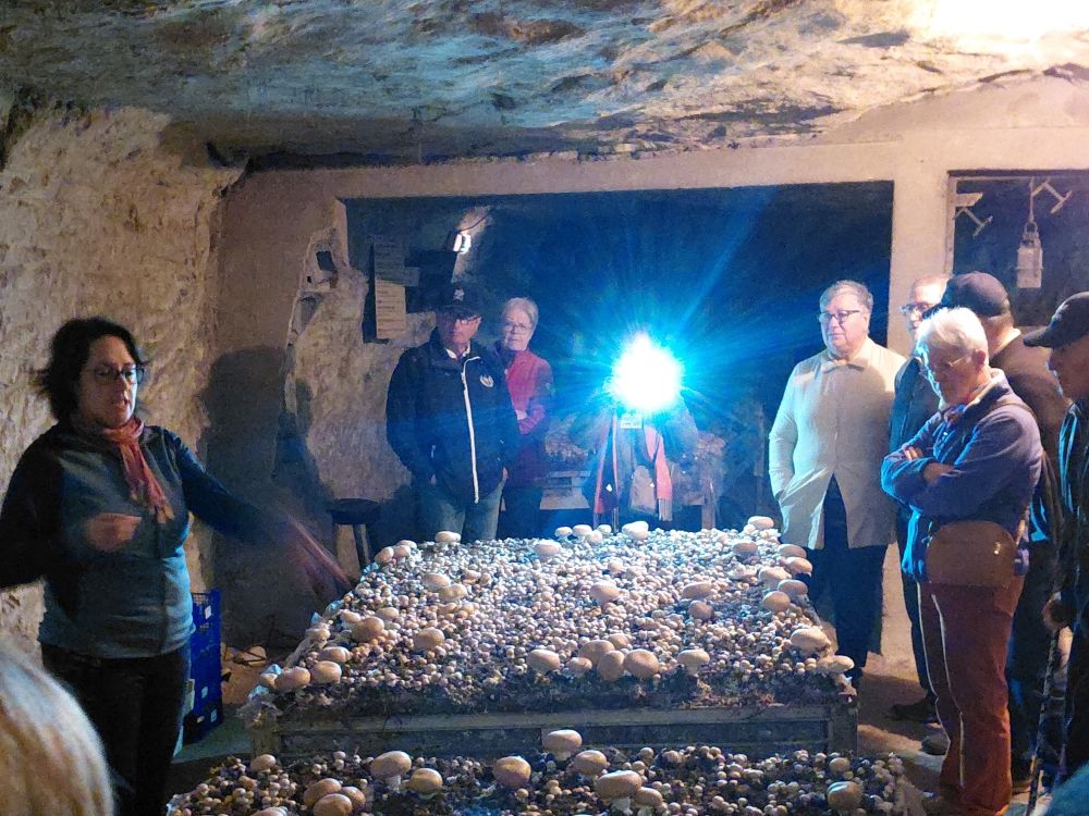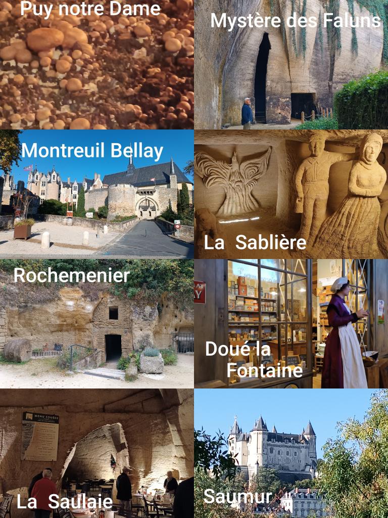 Lundi 13 : départ en car pour une visite de la cave vivante du champignon au Puy-Notre-Dame. Outre la culture du champignon, ses différents cycles et méthodes de culture, nous avons pu découvrir ces galeries troglodytiques datant du 16ème siècle, et comment était extrait le tuffeau, cette pierre si douce qui servait à construire de belles demeures et château en Anjou, et dans laquelle on trouvait d’extraordinaires fossiles marins.