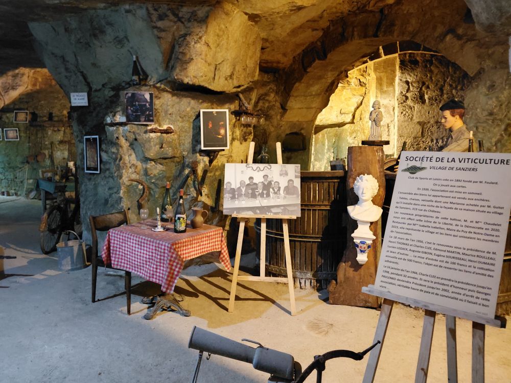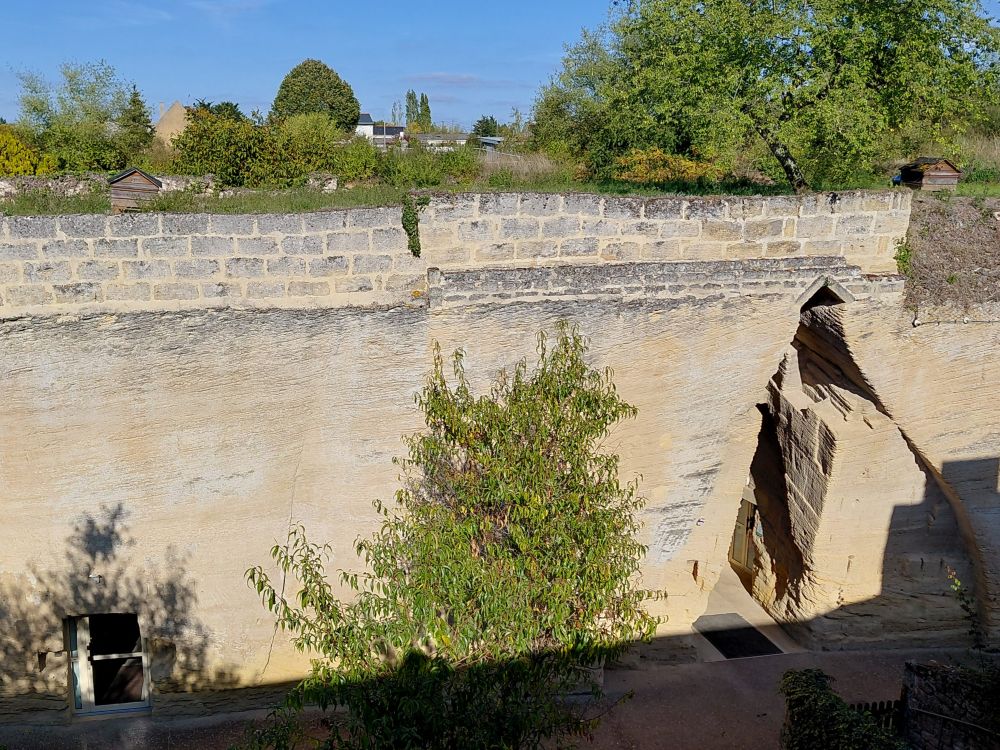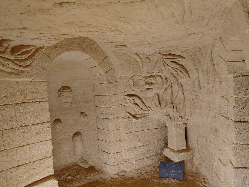Mercredi 15 : c’est “encore” un site troglodytique qui nous attend ce matin pour une visite guidée : les Troglos de la Sablière. Un lieu étonnant, plein d’histoire et artistique, dans lequel on découvre une sablière creusée au début du 20ème siècle pour en extraire le falun en sable, principalement pour la construction, une habitation troglodytique, un ancien bistrot troglo, des souterrains refuges ainsi qu’une exposition complète de fossiles retrouvés dans le falun et le tuffeau (dents de requin, oursin, ammonites…). Enfin, on découvre une partie plus contemporaine réservée à des artistes où des œuvres sont ainsi créées au fil du temps.