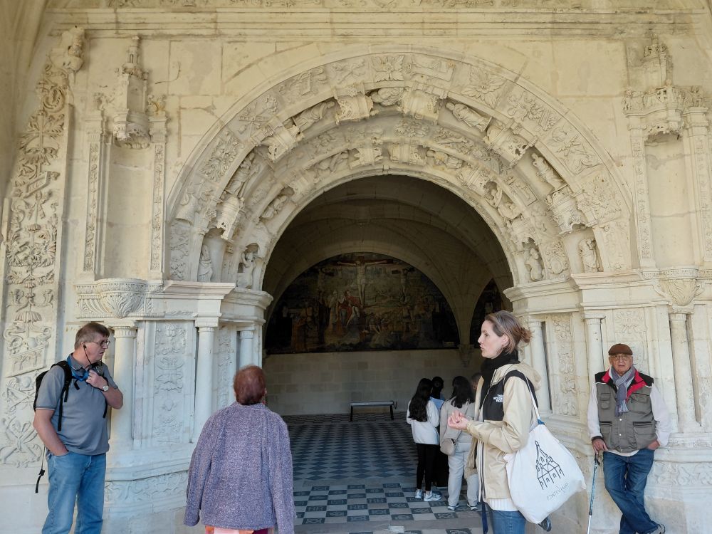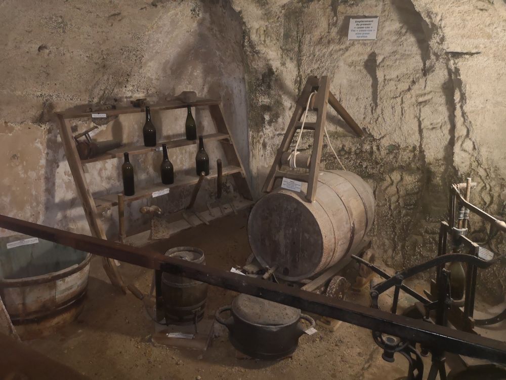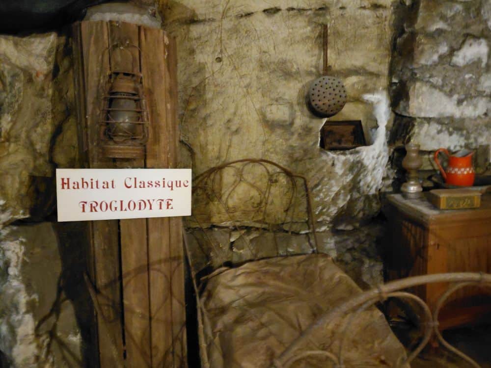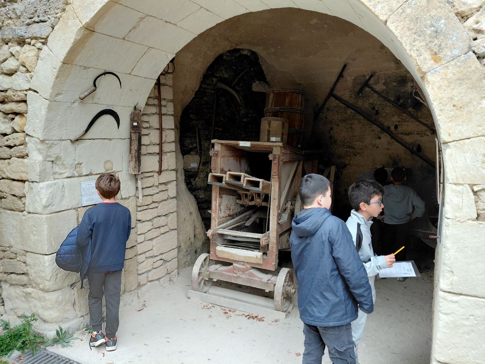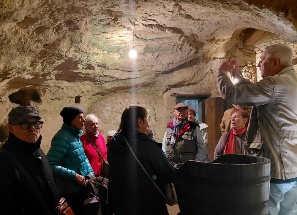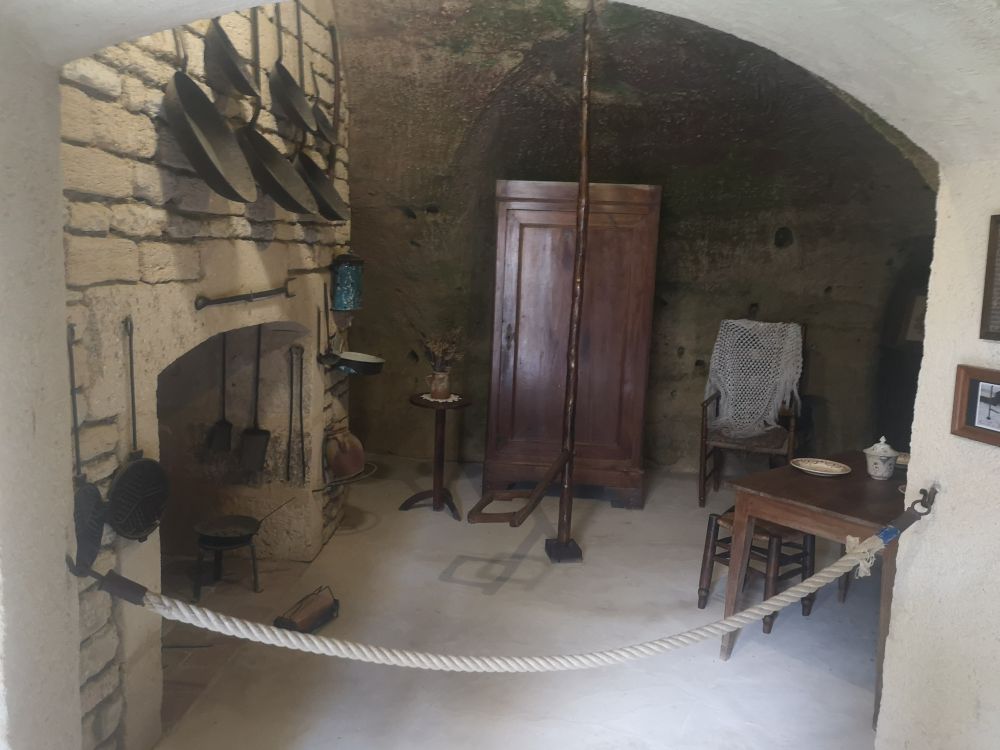Mardi 14 : Nous repartons en car pour une viste du village troglodytique de Rochemenier. Ce site a été exploité non pas pour de la pierre de tuffeau, mais pour l’extration d’une roche, le falun, ici très sableuse, utilisé comme amendement par les agriculteurs qui aménagèrent ces carrières en habitations, les mettant à l’abri notament des guerres de religions. Nous avons pu découvrir un monde souterrain, une chapelle, deux anciennes fermes avec habitations et dépendances abritant des centaines d’outils et meubles. paysans,.