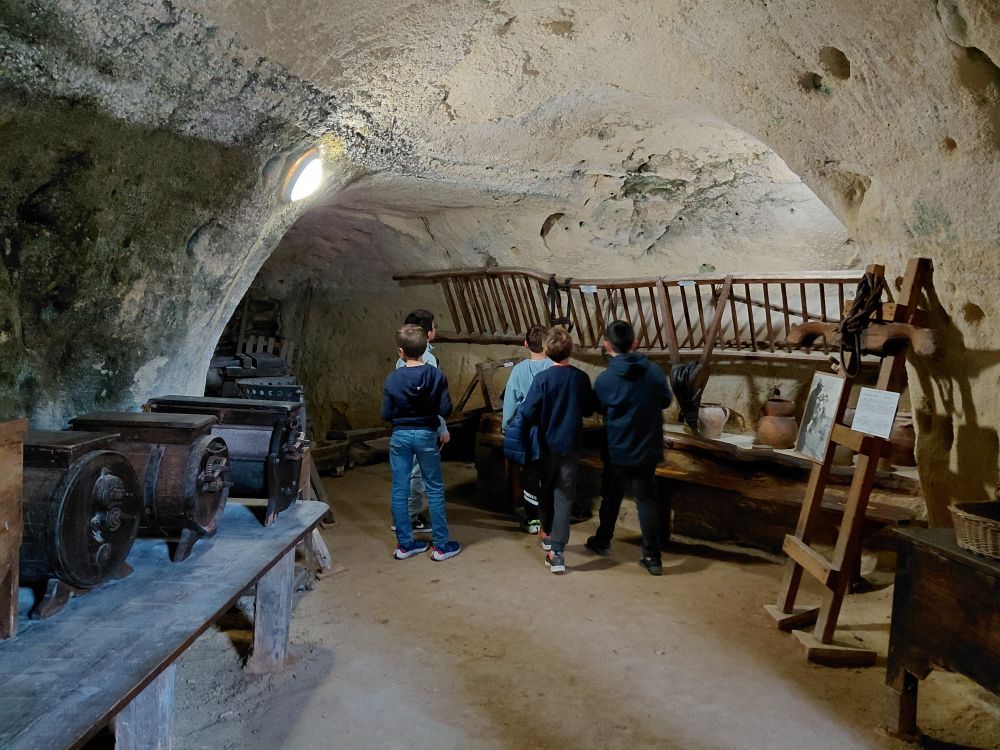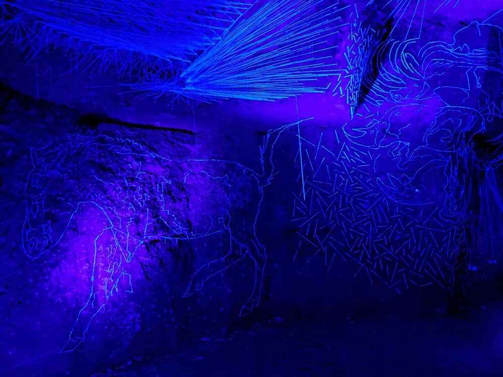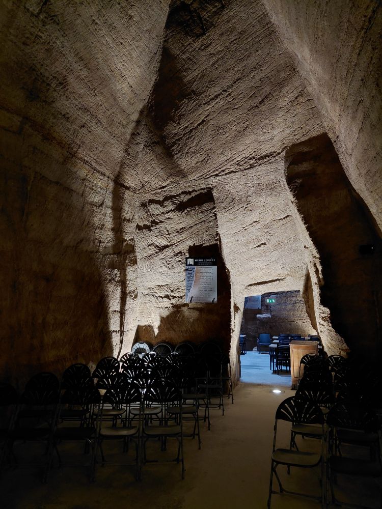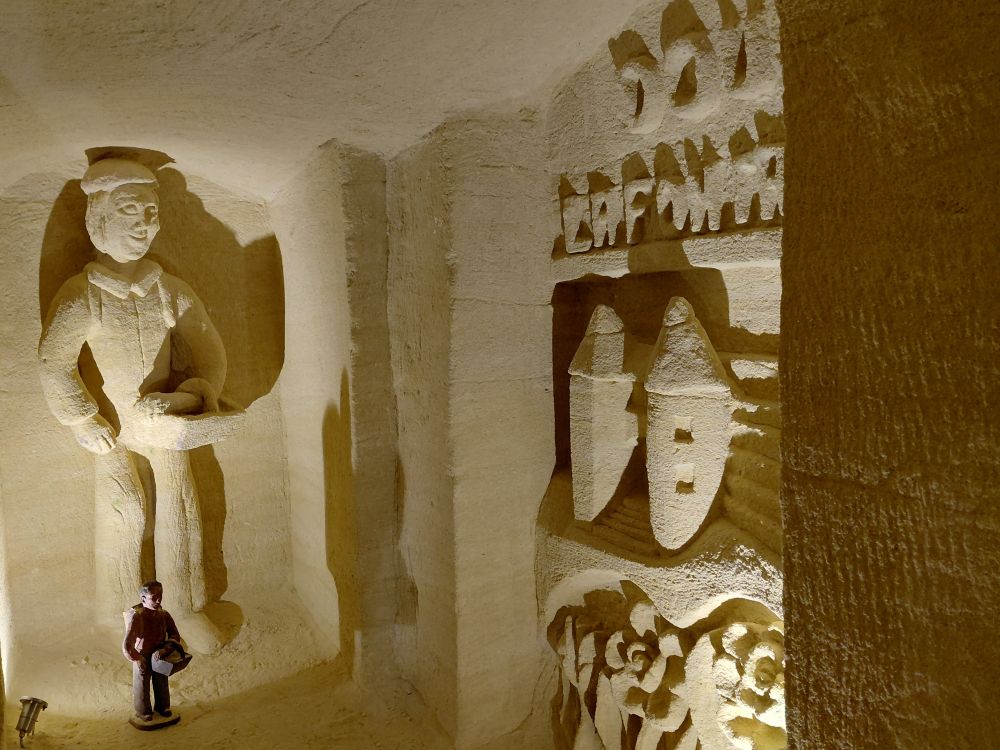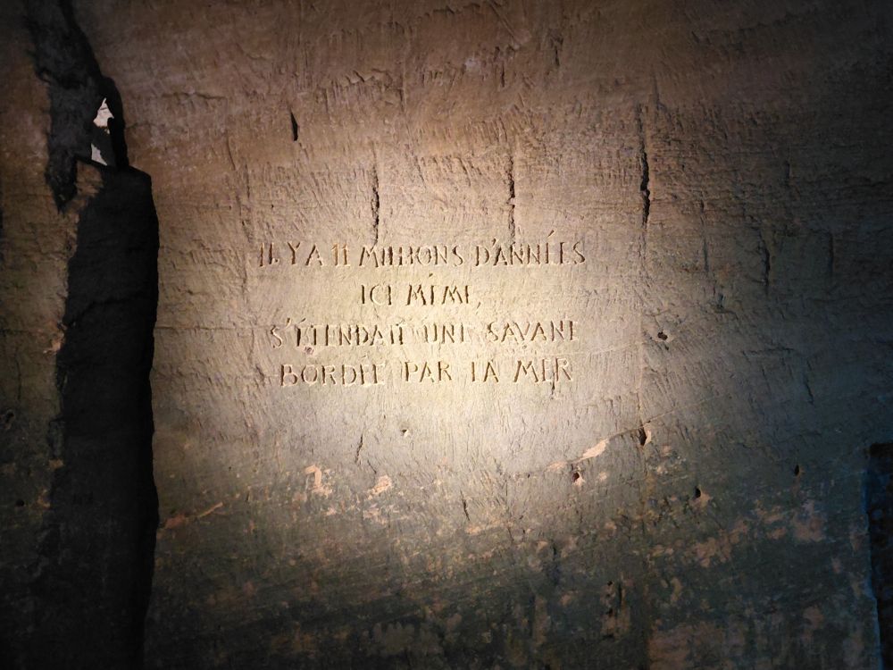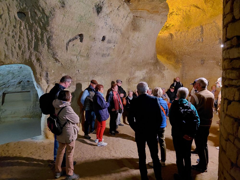 L’après-midi, nous visitons le 3ème site troglodytique de la journée : le site troglodytique des Perrières où nous découvrons le Mystère des Faluns, un parcours artistique dans les majestueuses galeries souterraines des Perrières… et un voyage à travers l’histoire géologique et humaine de ce site exceptionnel. Une promenade scénographique souterraine où nous sommes transportés dans l’univers sous-marin présent à Doué la Fontaine il y a 10 millions d’années.