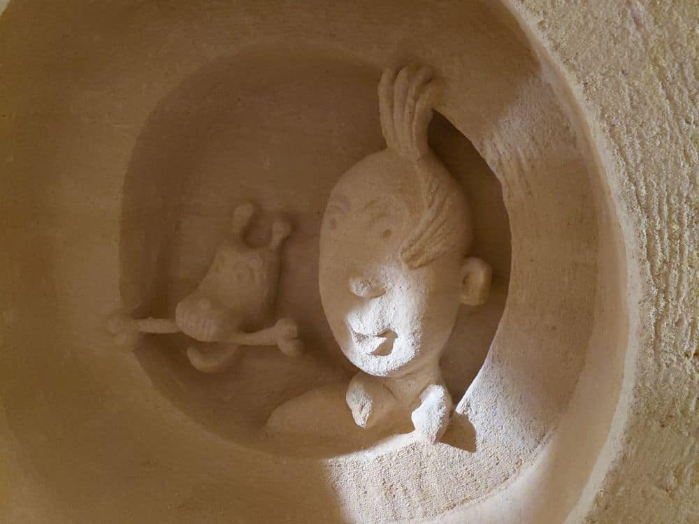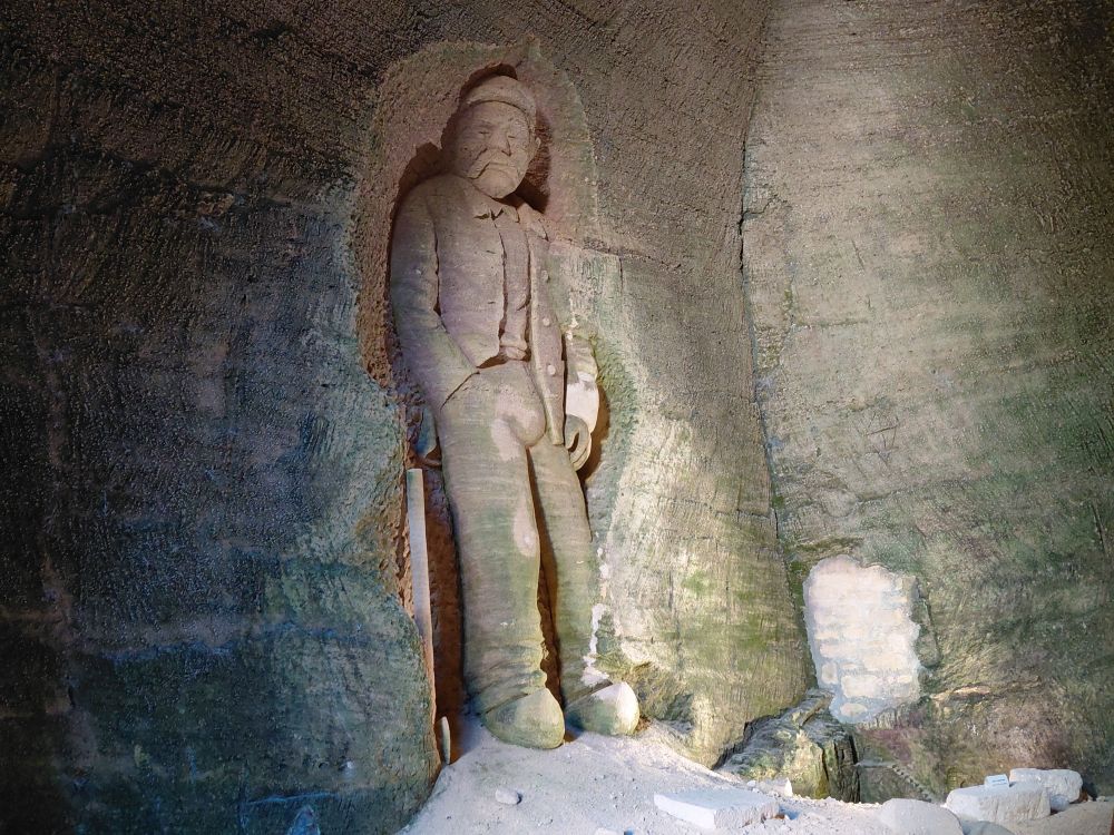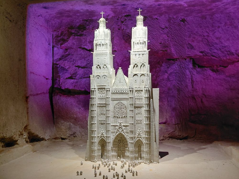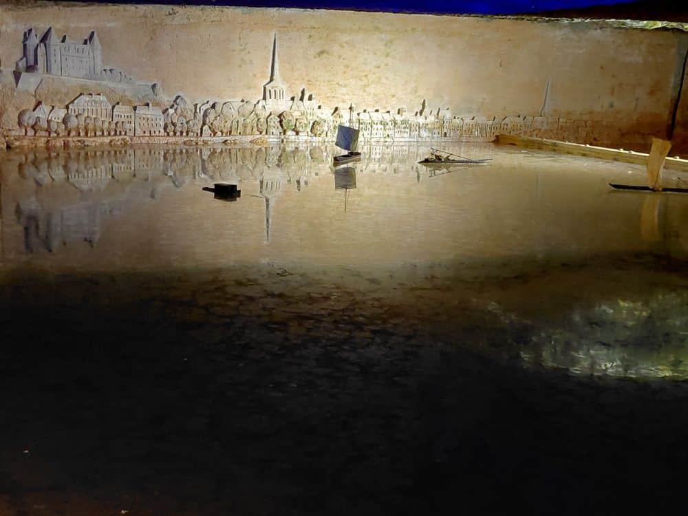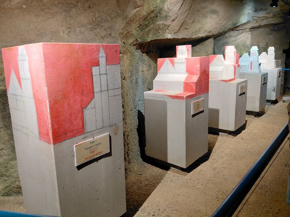 Vendredi 17 : c’est un nouveau site troglodytique, le parc Pierre et Lumière à Saint-Hilaire-Saint-Florent que nous découvrons. Cette ancienne carrière de tuffeau a été amenagée pour la réalisation d’une vingtaine de sculptures représentant les plus beaux monuments du Val de Loire taillées dans la pierre de tuffeau. Ce parc miniature souterrain est né de la rencontre de deux hommes de passion : Yann Bouchard qui en a eu l’idée, et Philippe Cormand, sculpteur autodidacte. qui passa près de 3 ans à tailler dans la pierre les somptueuses sculptures de châteaux, villes, villages et églises de la vallée de la Loire, certaines en bas-relief à même la roche.