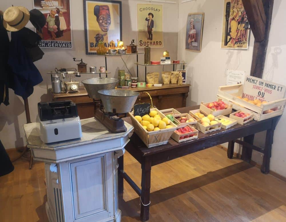 L’après-midi, nous visitons le musée aux anciens commerces à Doué la Fontaine, un lieu où le passé est très présent ! Situé dans les Ecuries du château du Baron Foullon (XVIIIe siècle), en pierre de falun, une vingtaine de boutiques présentent un siècle de commerce : 1850-1950; Cette visite est en partie guidée et surtout animée avec beaucoup d’humour par Jade, propriétaire et directrice des lieux.