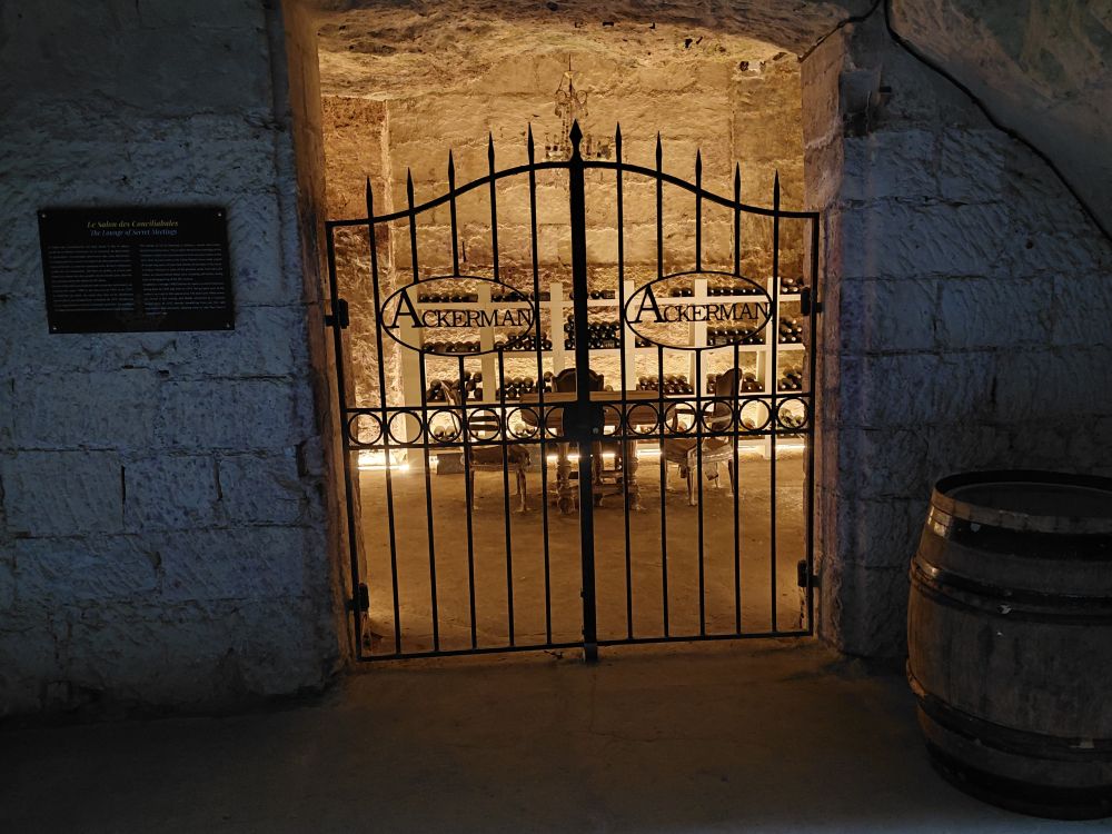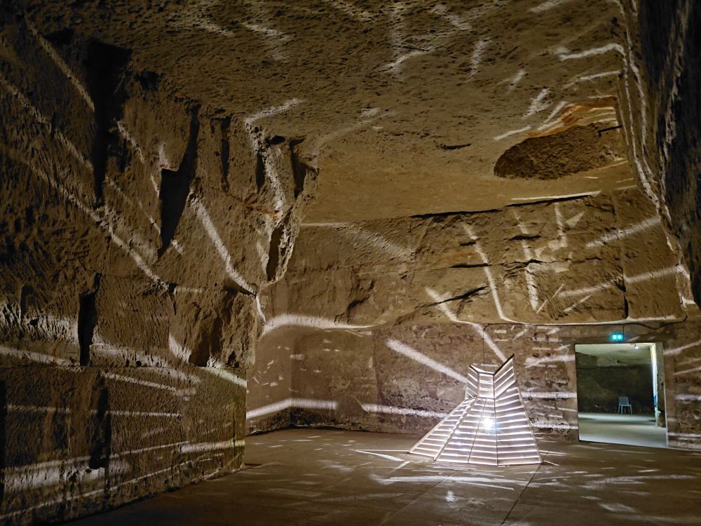 Après un repas au restaurant, nous nous dirigeons vers la Cave ACKERMAN ,une maison implantée dans le Val de Loire, depuis plus de deux siècles, qui a la volonté de valoriser cette belle région et son patrimoine, et apporte un soutien à l’art contemporain depuis 2015 avec la création d’une Résidence d’artistes. Et nous voici parti dans une nouvelle visite de caves troglodytiques, les plus hautes de la région, porteuse des marques du temps et du travail de l’homme, combinant l’art de l’assemblage et l’art immersif d’inspiration land art.