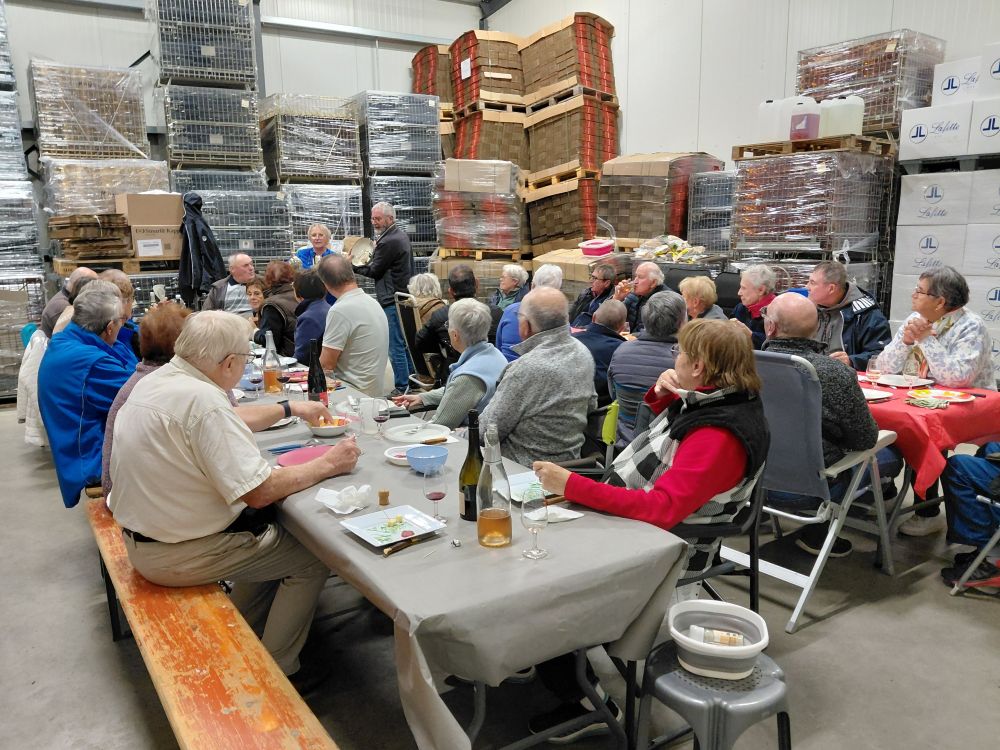 Nous reprenons la route et nous dirigeons vers le Domaine de la Montcellière à Lys Haut Layon, où Louis Guéneau, adhérent ACCCF, exploite avec ses 3 fils plus de 100 hectares de vignes. Après une visite de l’exploitation, nous nous retrouvons à l’accueil pour déguster ces vins d’Anjou et de Loire, puis nous passons à table pour le repas de cloture.