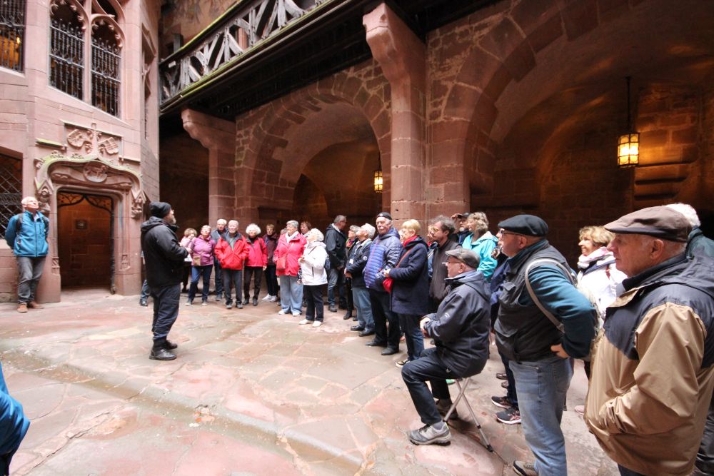 Mardi le 21 octobre : nous prenons le bus pour le château du Haut-Koenigsbourg, pour une visite animée par un guide superbe qui a bien su mettre en valeur l’histoire du château. Retour vers Riquewihr de 11h30 à 12h00, déjeuner et après-midi libre, que certains vont profiter pour aller faire quelques emplettes à la chocolaterie Stoffel à Ribeauvillé, d’autres vont visiter la ville de Riquewihr.