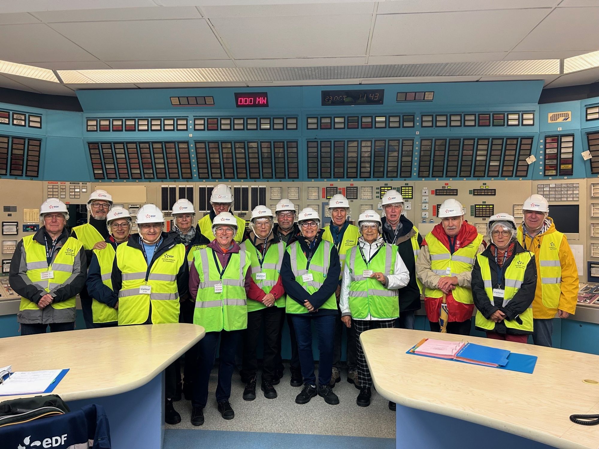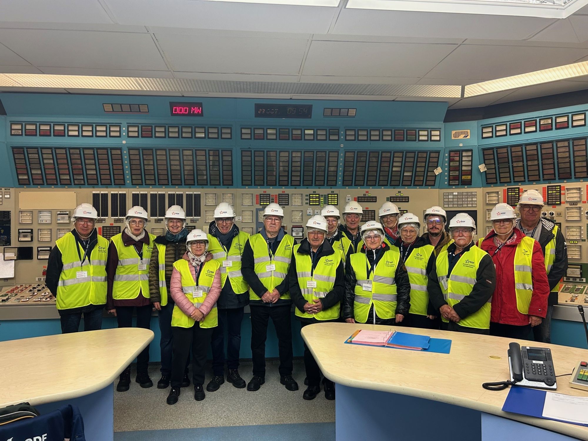 Jeudi 23 octobre : nous partons en camping-car pour la centrale nucléaire de Fessenheim où les formalités d’admission sont drastiques ; puis, équipés de casques et chaussures de sécurité, nous faisons la visite de la centrale, constituée essentiellement d’un bâtiment dont nous visitons l’étage à 15m (par l’ascenseur) et la salle de conduite qui est typique des années 70, beaucoup de matériel analogique.