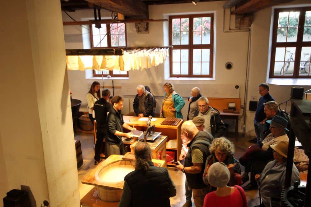 A 11h45 nous partons vers le café de la Papiermühle (musée du papier) et prenons le repas en commun. S’en suit la visite du musée du papier que nous faisons en 2 groupes et nous retournons au bus à 16h15 ; il nous ramène à Village-Neuf vers les CC et nous y rencontrons Christian et Anne Lydry, de nouveaux adhérents qui nous ont organisé ce parking.