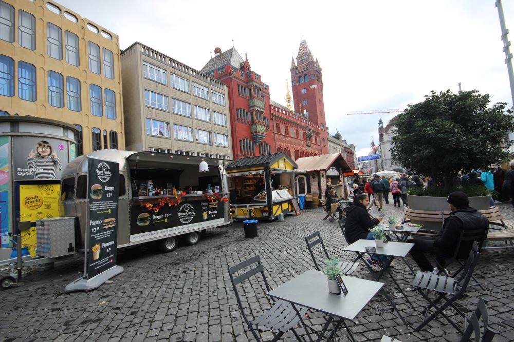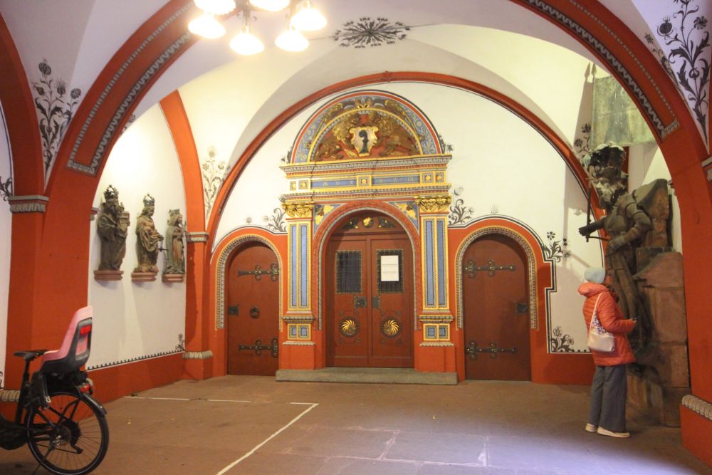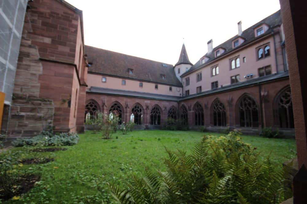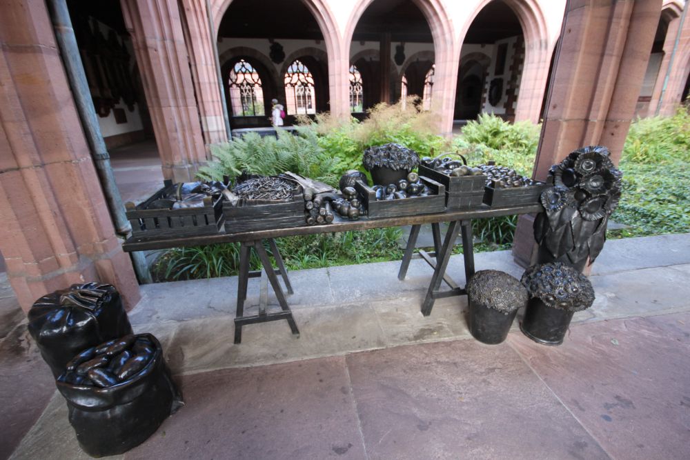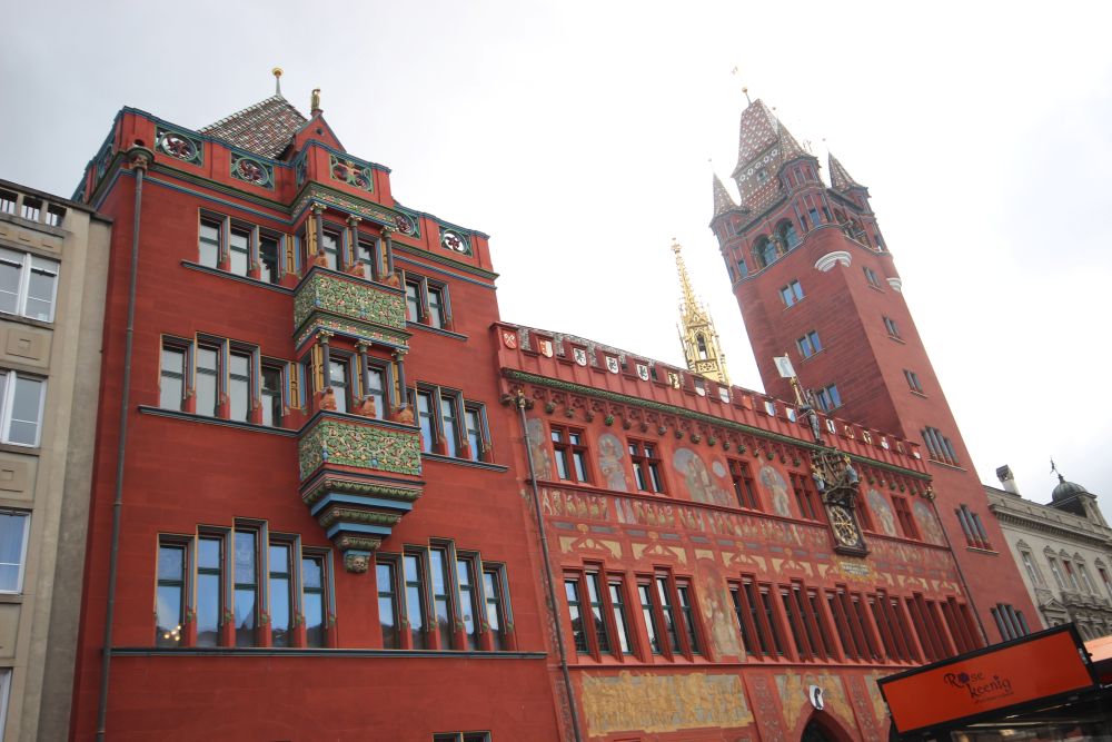 Vendredi 24 octobre : nous stationnons les camping-cars à Village-Neuf et prenons un bus qui nous emmène à Bâle et nous dépose à la Schifflände qui était le port des pêcheurs sur le Rhin. Nous allons à pied à la place du marché et visitons la cour de la mairie puis nous allons vers la mittlere Brücke (le pont du milieu) voir le Rhin et ensuite nous montons vers la cathédrale que nous visitons intérieur/extérieur.
