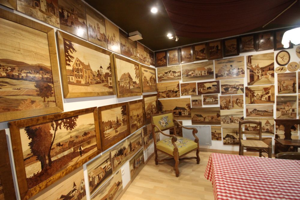 Samedi 25 octobre : Nous faisons la grasse matinée et nous retrouvons l’après-midi à Galfingue où Maurice Fischesser nous fait découvrir son musée qui comporte une collection de tracteurs, des engins agricoles, des costumes anciens et finalement son exposition de marqueteries (il en en fait plus de 6000 depuis son plus jeune âge).