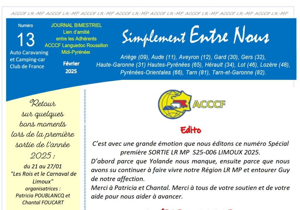 Le journal “Simplement Entre Nous” reprend les nouvelles de notre section LMRP, il est accessible par le lien ci-dessous (réservé aux adhérents connectés) Notre revue Simplement Entre Nous Autres sorties pouvant vous intéresser