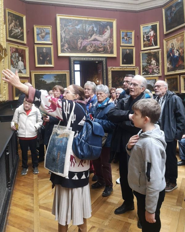 Nous commençons par une visite guidée de ce magnifique château, élu monument préféré des Français 2025 . Nous découvrons la deuxième collection de peinture anciennes de France, et les collections de livres réunies depuis le Moyen Âge par les seigneurs de Chantilly, tels les ducs de Montmorency et les princes de Bourbon-Condé. Le dernier héritier du château, Henri d’Orléans (1822-1897), duc d’Aumale a légué le domaine de Chantilly et tous ses trésors à l’Institut de France en 1886.