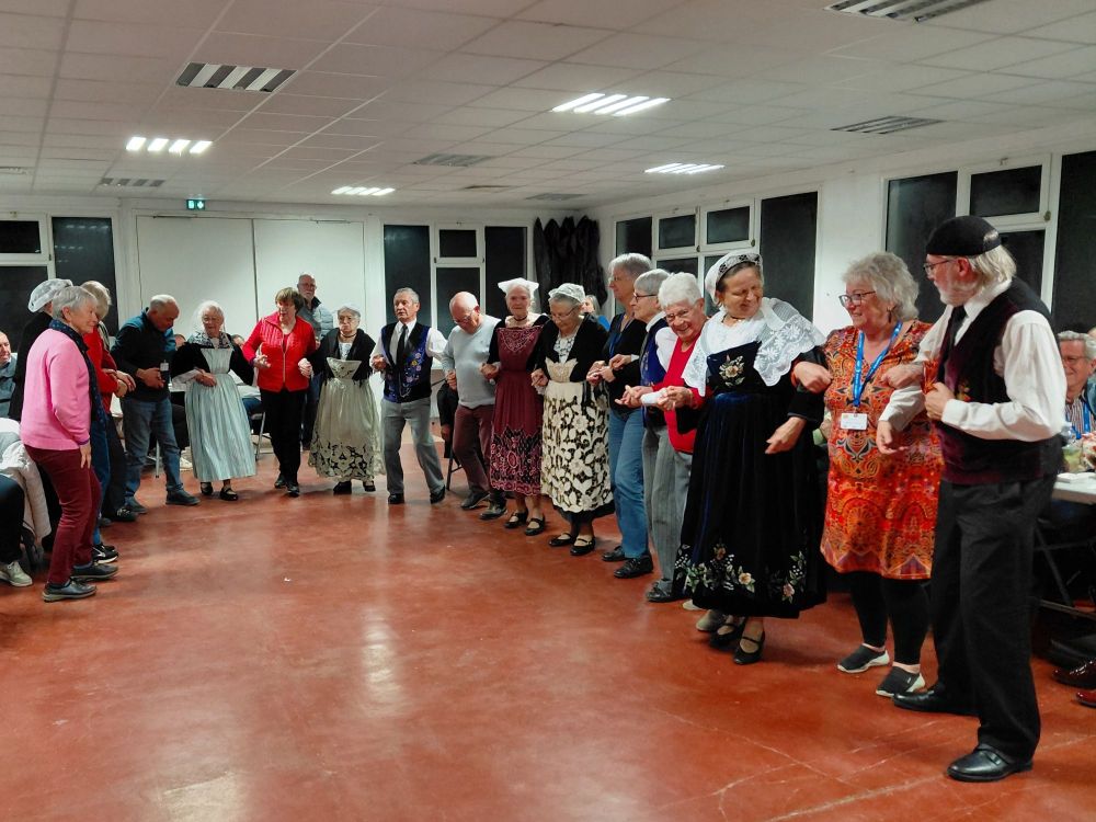 La Bretagne fut évidemment mise à l’honneur lors d’une soirée mémorable où le cidre, les crêpes et galettes régalèrent les campeurs. Le cercle celtique d’Arradon y présenta les costumes du pays vannetais et entraina dans sa ronde les plus courageux des danseurs. Aucune entorse n’a été a déplorer.