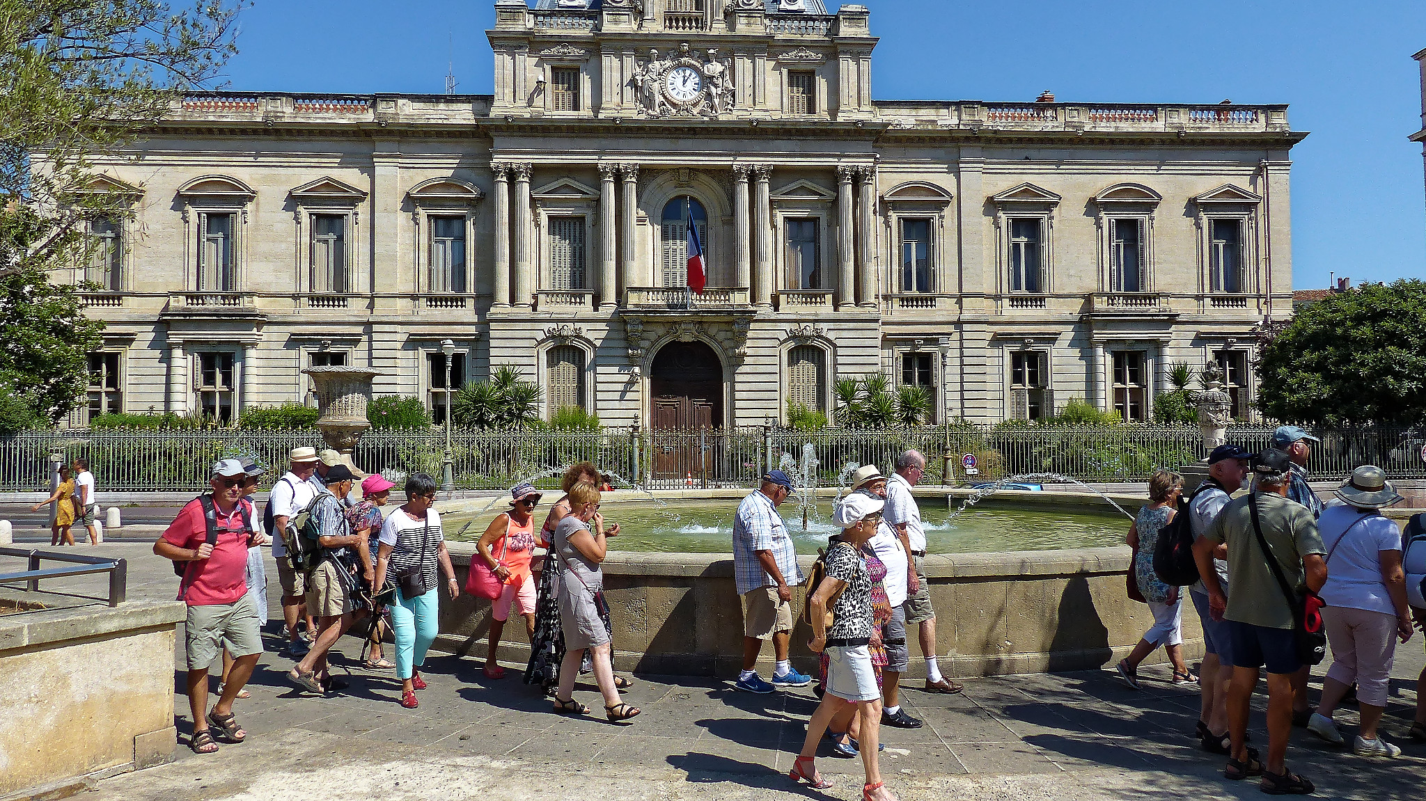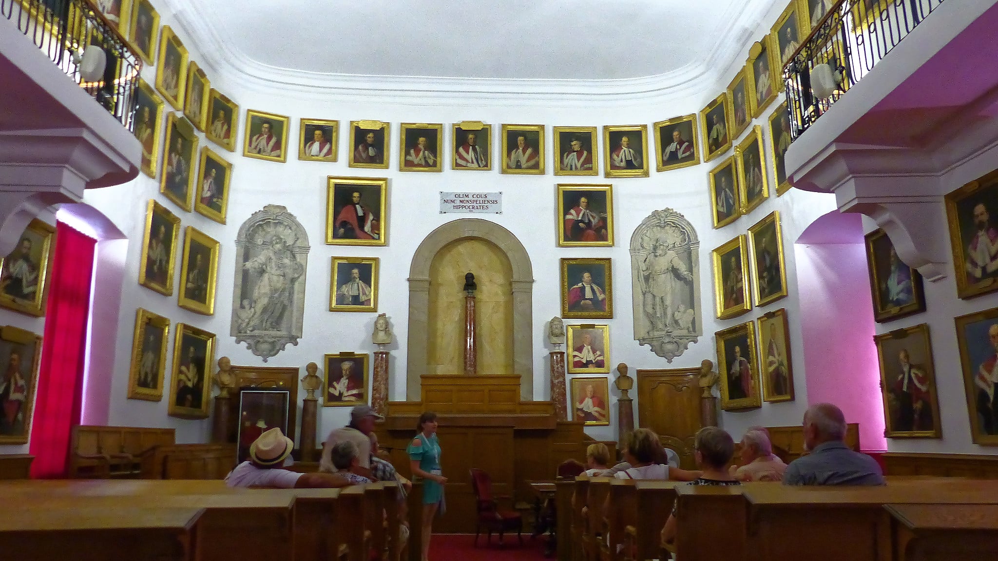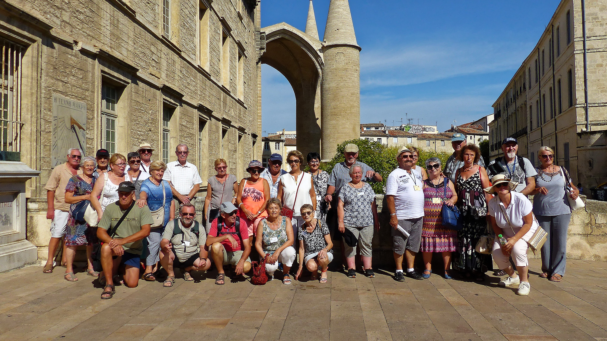 Lundi 20Aout: 9h00 nous partons en bus visiter le centre historique de MONTPELLIER. Nous commençons par les Arceaux et son beau jardin du PEYROU, faisant honneur au Roi soleil louis XIV. Une visite guidée nous permet d’accèder exceptionnellement en haut de l’arc de triomphe. Un vrai régal car la vue est exceptionnelle. Nous nous dirigeons ensuite vers le centre ville pour une visite du MIKVE, bains purificateurs juifs du 12 ème siècle le plus vieux de France. Nous allons ensuite vers l’Hôtel de Varenne où nous admirons les belles voûtes ainsi qu’un bel escalier en pierre de taille. Nous arrivons ensuite sur la très belle place de la Comédie avec sa fontaine des trois grâces et son Opéra. Une pause repas bien appréciée nous est proposée. Après ce bon repas, nous continuons la marche vers l’ancienne Faculté de Médecine. Visite de la grande salle de la collection de toutes sortes de parties du corps humain ayant permis l’étude et la connaissance de ce dernier afin de comprendre et guérir les maladies. La faculté de médecine est accolée à la cathédrale Saint-Pierre. Retour au camping en car