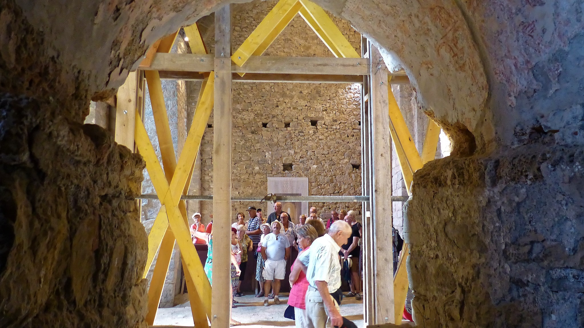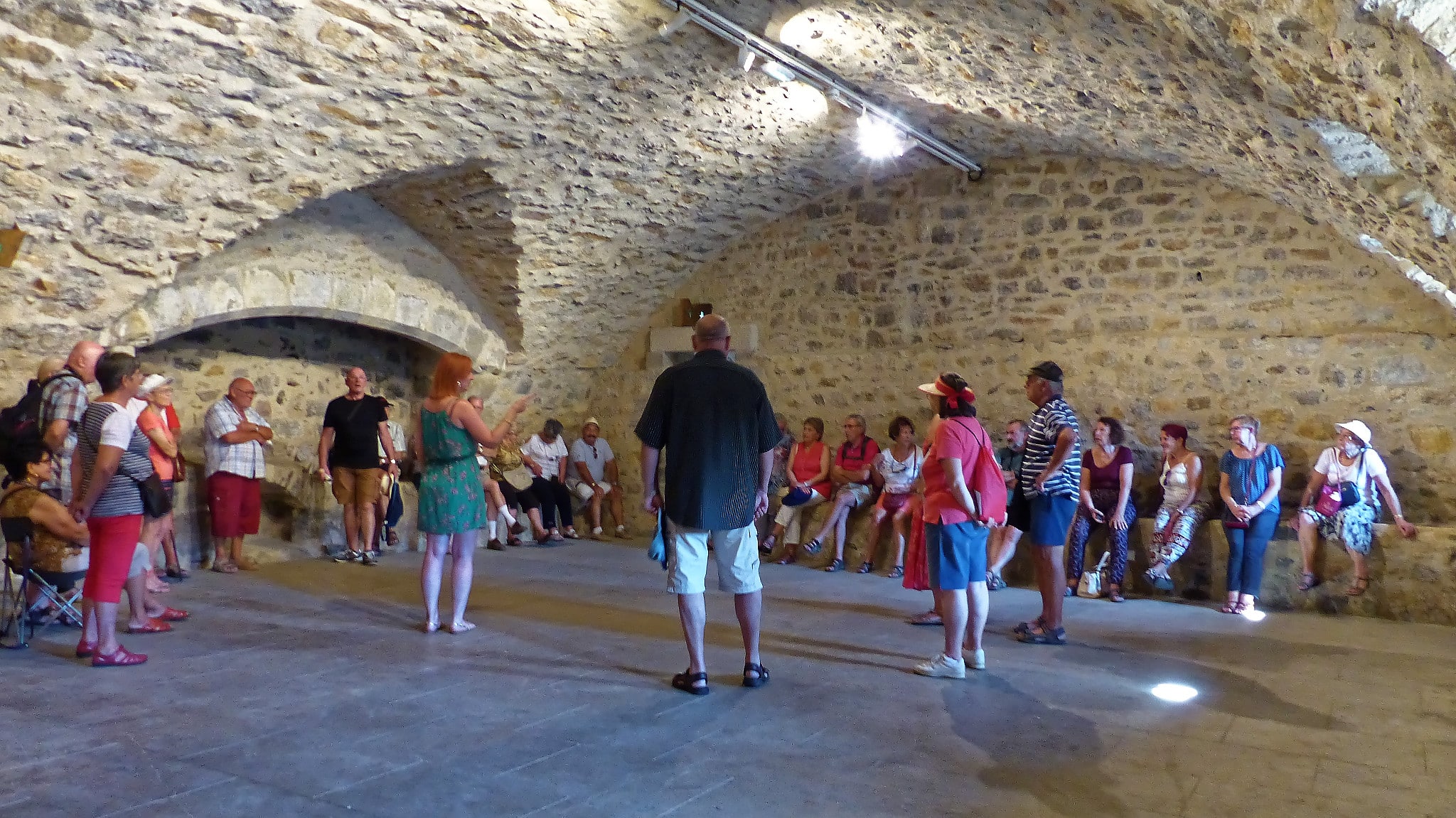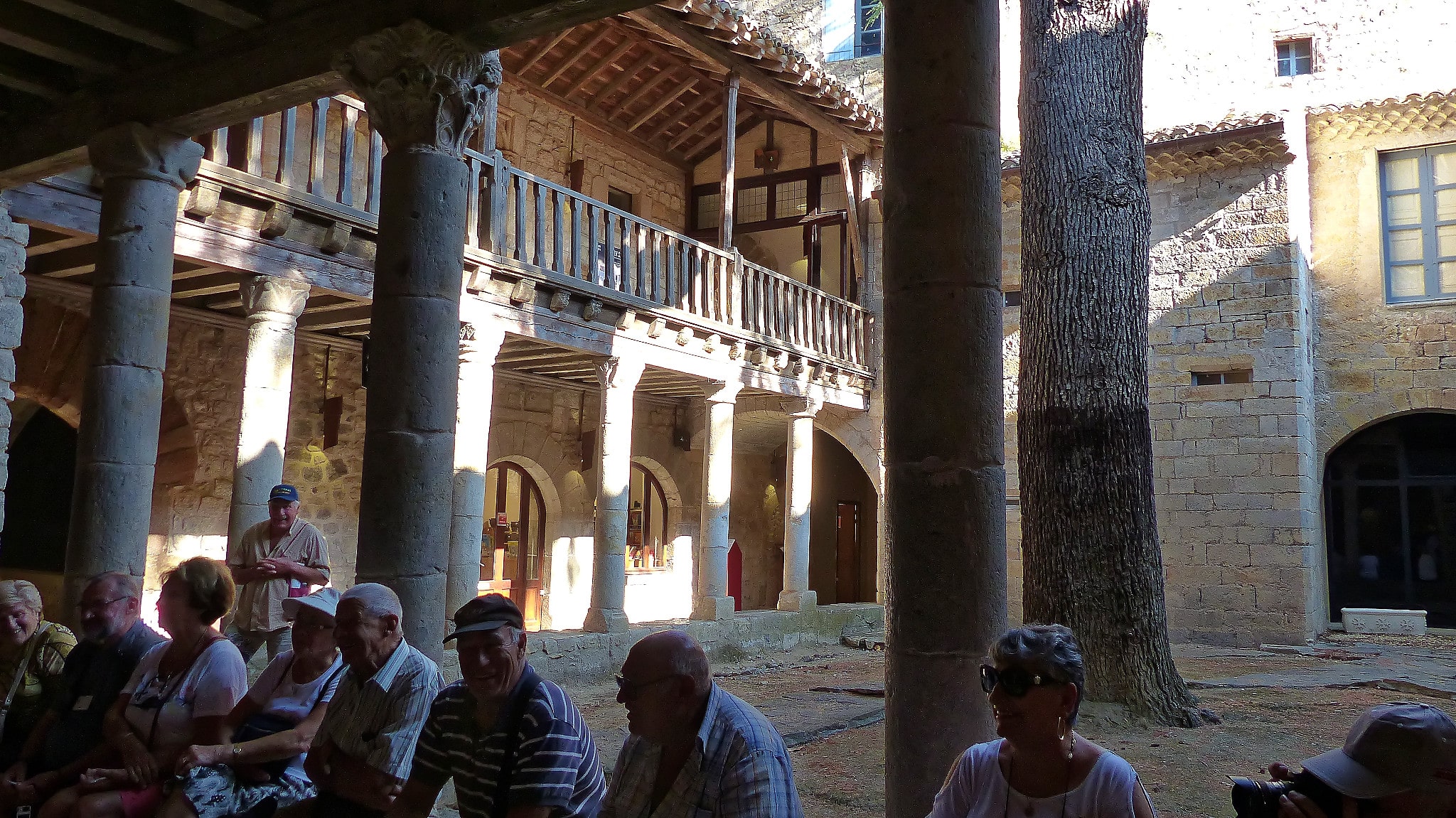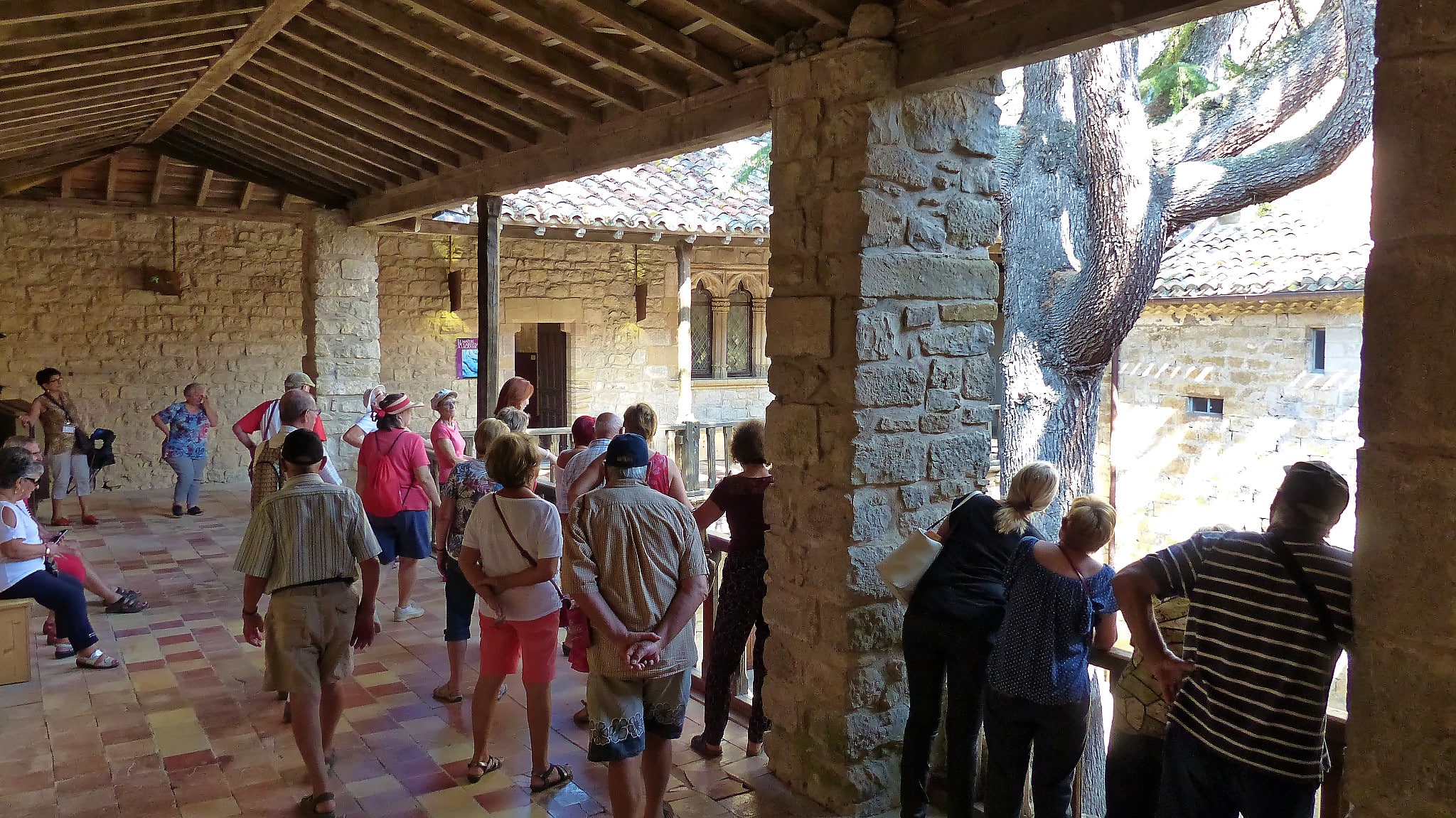 Mardi 21: En route vers le département de l’AUDE pour la visite de l’Abbaye de LAGRASSE Cité Médiévale…classée monument historique. Un village plein de charme et d’histoire nous accueille sur une aire de service en bordure de la ville. Nous admirons le pont vieux fortifié – la halle – les rues pavées de calades – les maisons ouvertes laissent découvrir aux passants les superbes et historiques plafonds peints.