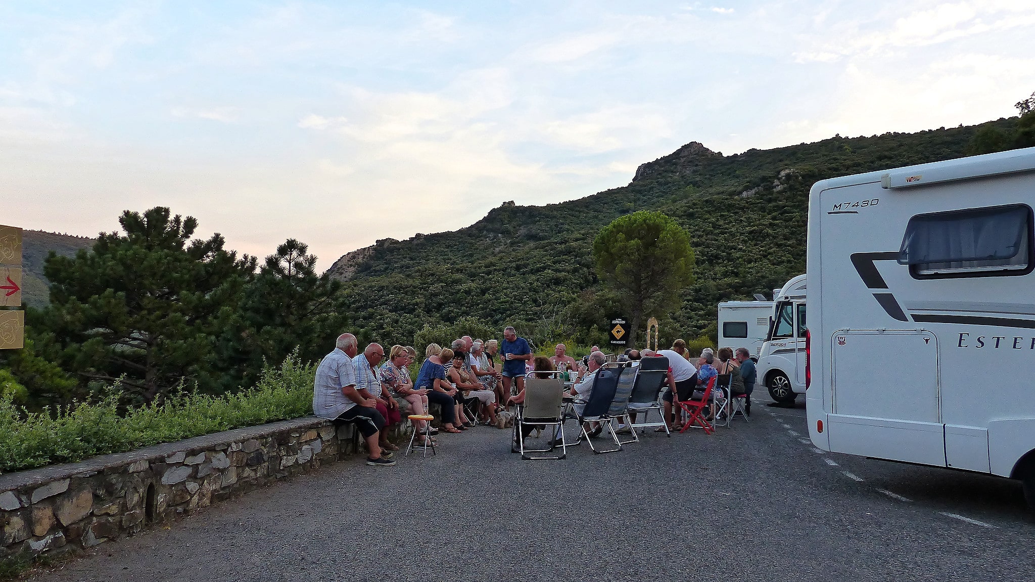 Samedi 31 : – Arrivée au PLATEAU de BEILLE pour terminer ce périple. Randonnée pour les plus courageux permettant d’admirer les montagnes à 360 °. Le temps fut magnifique au milieu des vaches – moutons – chevaux de race « Mérens » que l’on pouvait caresser. Nous avons fêté l’anniversaire de Suzanne. – 12h30- Repas de clôture au restaurant l’Abeille Gourmande, ambiance très conviviale. a donné des idées et des envies à un couple qui déjeunait a nos cotés. Suite pour une éventuelle adhésion au sein de l’ACCCF. Courage à tous ceux qui ont eu des soucis de camping car (accident sans gravité sur la santé fort heureusement) – également panne moteur et remorquage pour certains. Merci à Nicole MOREGAT -suppléant Alain MOGENDRE, pour ce nouveau et beau voyage.