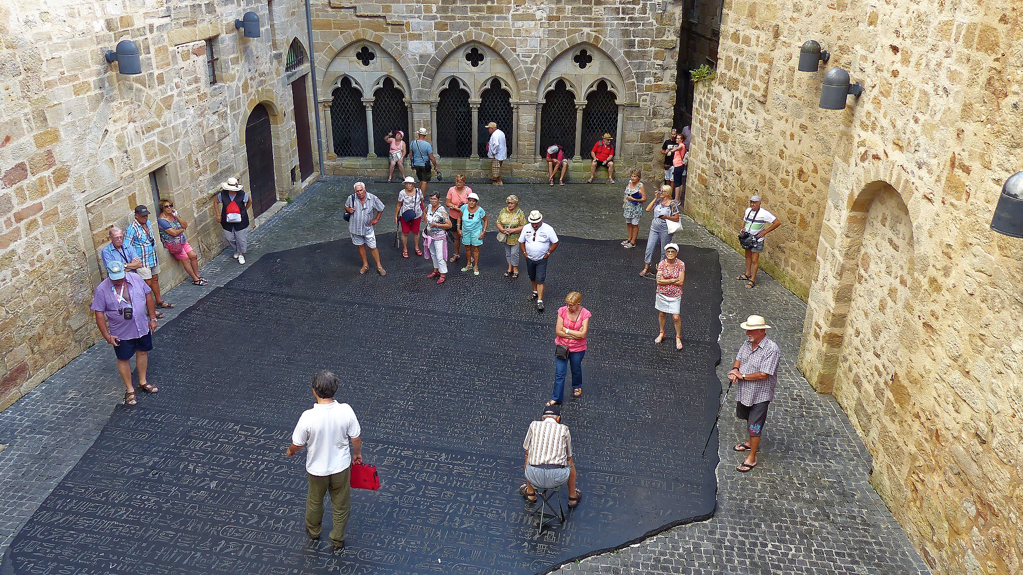 Lundi 27 :Départ pour FIGEAC à env. 50 km, sur l’aire de C.C. rue du Champ St. Barthélémy – A 16h00 visité guidée à pieds et en petit train FIGEAC – Dans la vallée du Lot et du Celé ce village se trouve sur le chemin de St Jacques de Compostelle. Visite guidée de la ville à pied et en petit train . Découverte de la belle “place des écritures” dite aussi “place Champollion” .Le sol est fait de dalles de granit noir avec multitude d’hiéroglyphes et de diverses écritures anciennes.
