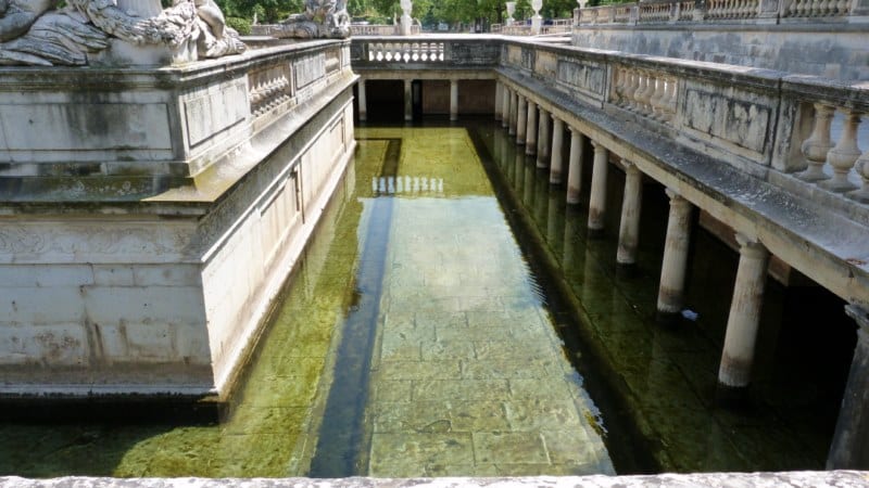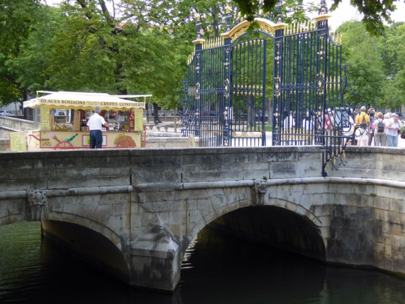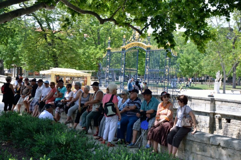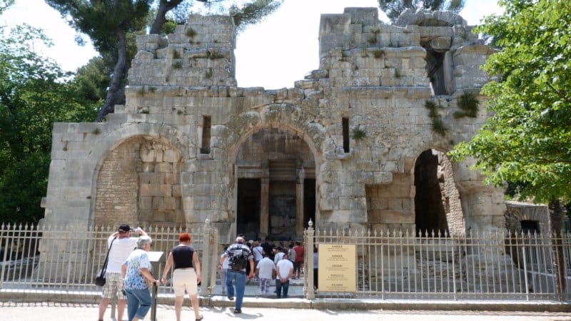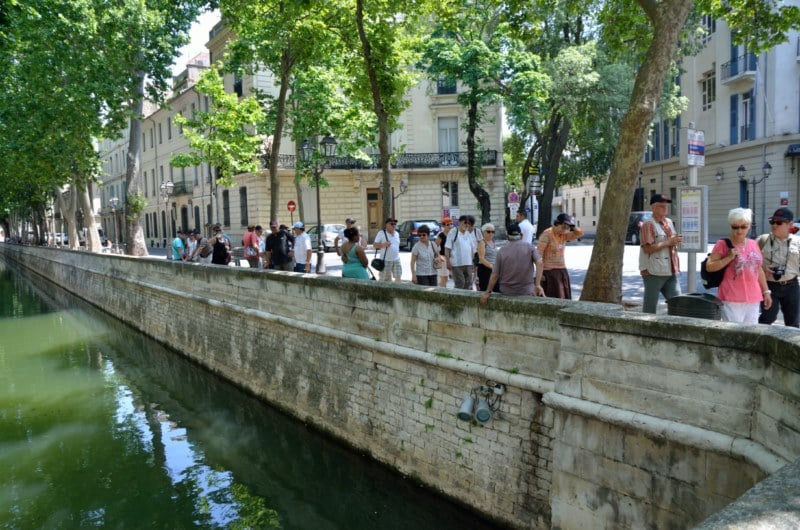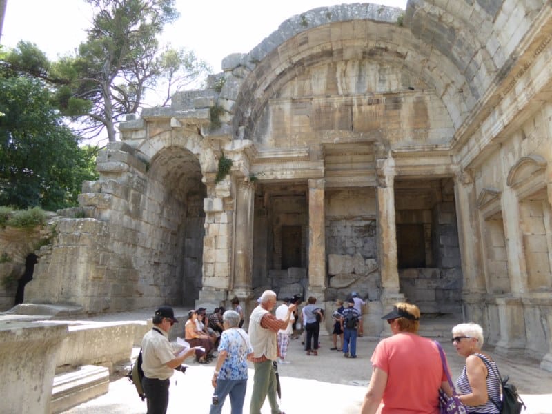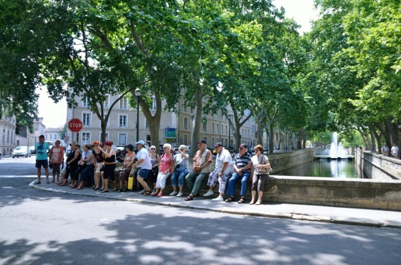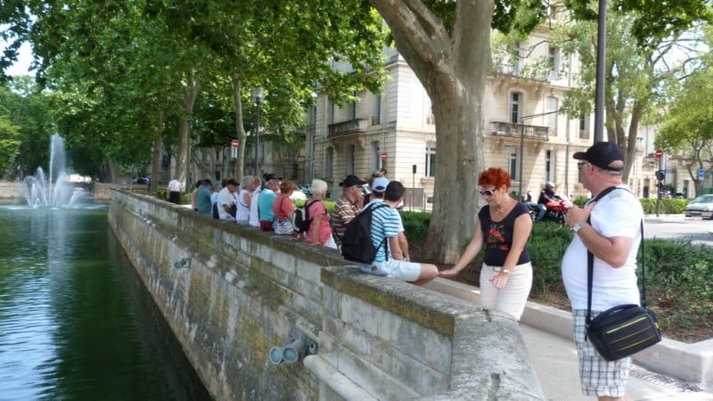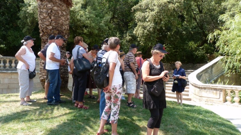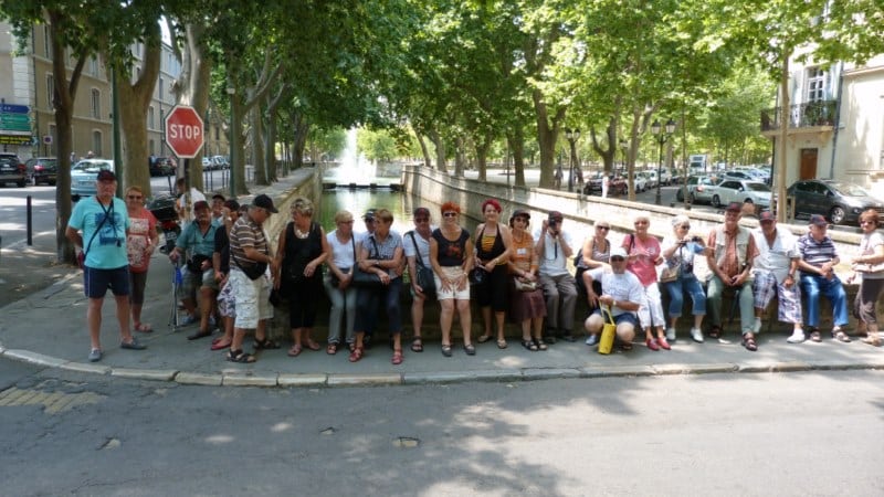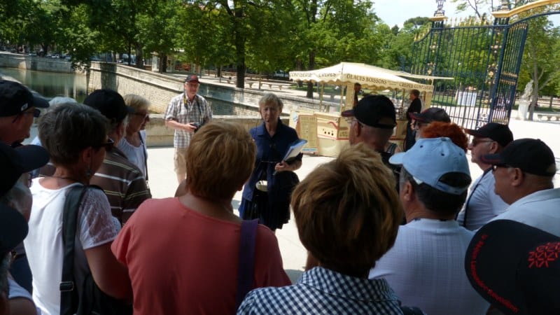 Mardi 9 juin : Rendez-vous dans la matinée sur le parking du STADE des COSTIERES de NÎMES. Repas de midi dans les C.Cars. 14h00- départ en TRAM-BUS pour le Centre ville. Vers 14h30- visite guidée du centre ville. Notre guide nous amène en premier lieu au “JARDINS de la FONTAINE”. Elle nous passionne par ses explications sur toute l’histoire Romaine sur NÎMES depuis ses débuts, nous parle des grandes figures qui ont influencé l’évolution de la ville et de la région. La résurgence de la source d’eau a été totalement prise en main en commençant par assêcher tout le pourtour, jusque dans la plaine qui était un marécage. La partie basse du bassin de la fontaine n’a pû être amén agée qu’en enfonçant profondément des pieux en chêne très serrés les uns aux autres pour pouvoir créer une plateforme pouvant supporter les énormes bâtiments (disparus depuis longtemps) Un théatre de taille très modeste est encore en place, mais recouvert de terre pour sa préservation dans le temps. Ensuite, elle nous parle du canal creusé pour canaliser l’eaujusqu’à la sorties de la ville. Pendant la traversée à pieds du centre-ville, notre guide nous fait remarquer, quelques restes d’habitations d’époque encore en partie visibles. Retour aux C.Cars, et bivouac sur place.