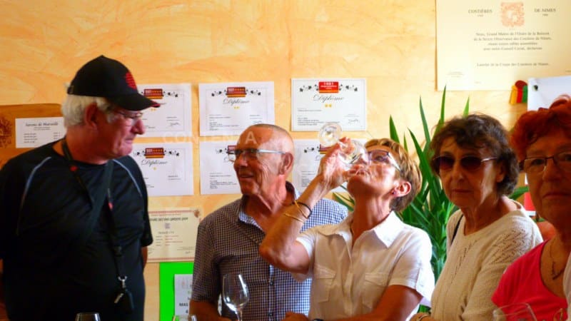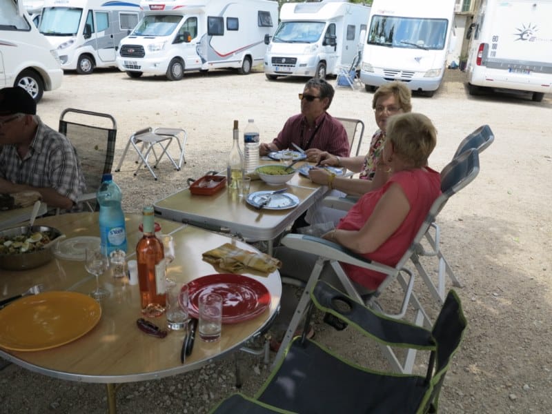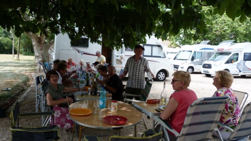 Mercredi 10: Départ vers 9h00 -pour le domaine “ST.LOUIS la PERDRIX” où notre fils Renaud travaillait. A notre arrivée, nous installons, avec l’accord de Renaud, les C.CARS pour DEUX nuits sous les arbres au centre même du domaine, avec accès à l’eau sauf la vidange. Merci beaucoup ! Vers 10h00 -un apéritif dégustation de la gamme de vins de la propriété, accompagné de petits toasts, nous est servi. Repas dans nos véhicules. Nuit sur place