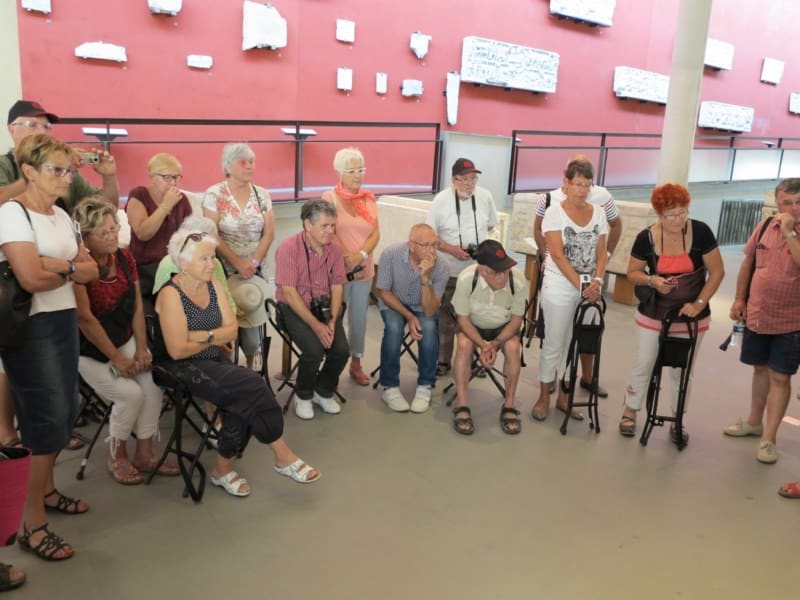 Jeudi 11 : vers 8h00 -départ pour “ARLES” visiter le”MUSEE ANTIQUE”. Nous découvrons la beauté des lieux, des oeuvres exposées, et l’énorme barque de transport de matériaux qui a coulé il y a trois mille ans. Elle a pu être sauvée des eaux, et traitée spécialement afin que le bois ne se dégrade au contact de l’air. Nous sommes fascinés par tant d’oeuvres d’art antiques. Repas de midi dans les C.Cars.- 14h00- Départ pour une balade libre du centre ville à pieds. Vers 17h00 -retour par navette gratuite au parking de véhicules pour le camping ” BAGATELLE à AVIGNON. Verre de l’amitié