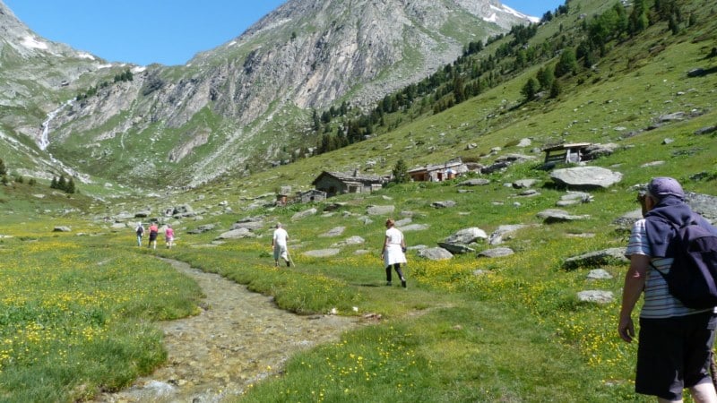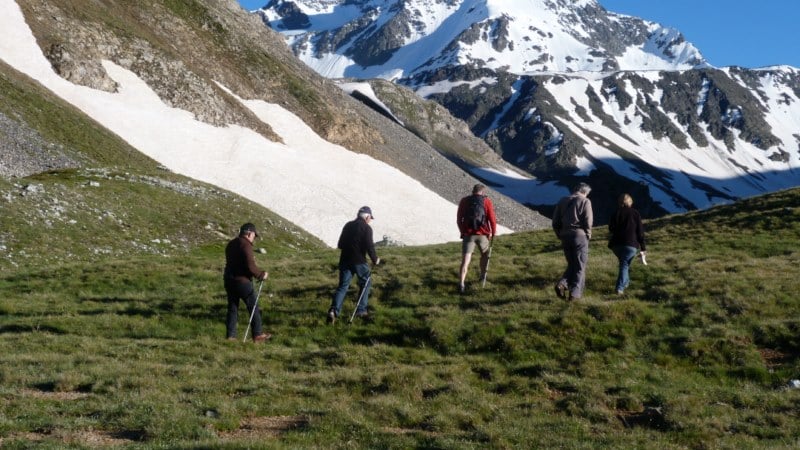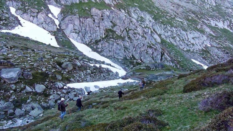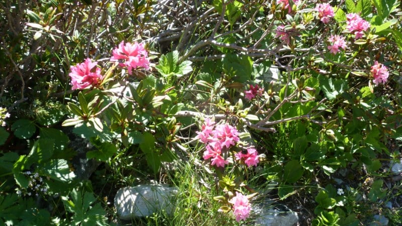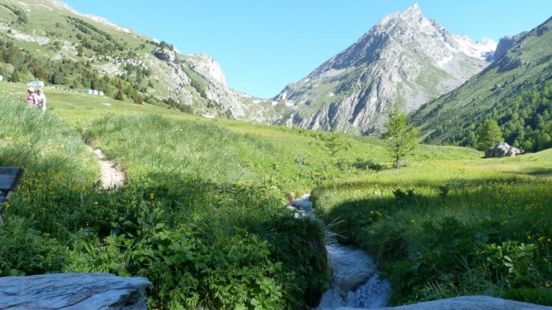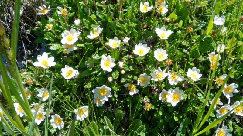 L’après midi, après le repas au refuge, nous partons tous ensemble faire un balade par le fond de la vallée, vers le pieds des montagnes en longeant un petit ruisseau tumultueux, dont les aboerds sont parsemées de jolies fleurs