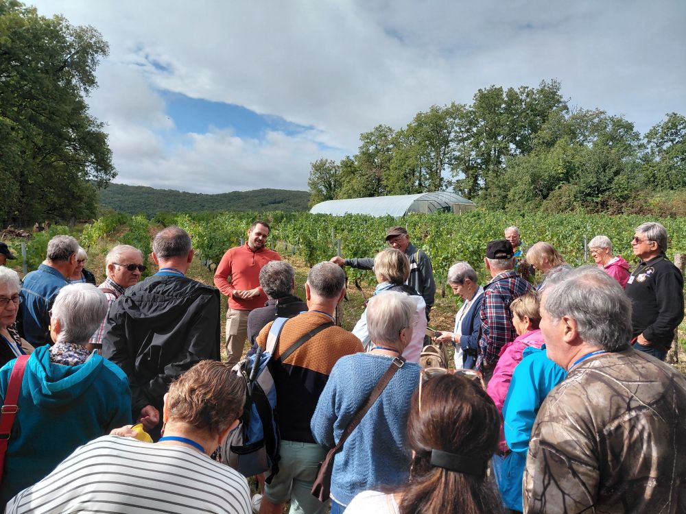 Lundi 1er septembre: Départ vers 9h30 pour une visite du vignoble “Les Claies de Mailhol” petite propriété produisant 5500 bouteilles par an, où nous avons fait la charmante connaissance du jeune propriétaire des lieux. (aidé à l’occasion par son père) Ce dernier fait un élevage de son vin particulièrement. En gros, le raisin est posé pendant quelques temps sur de la paille, et est ensuite vinifié. Après la dégustation traditionnelle où, nien entendu, nous nous sommes régalés, nous sommes tous passés aux choses sérieuses en achetant bien entendu ce délmicieux Nectar