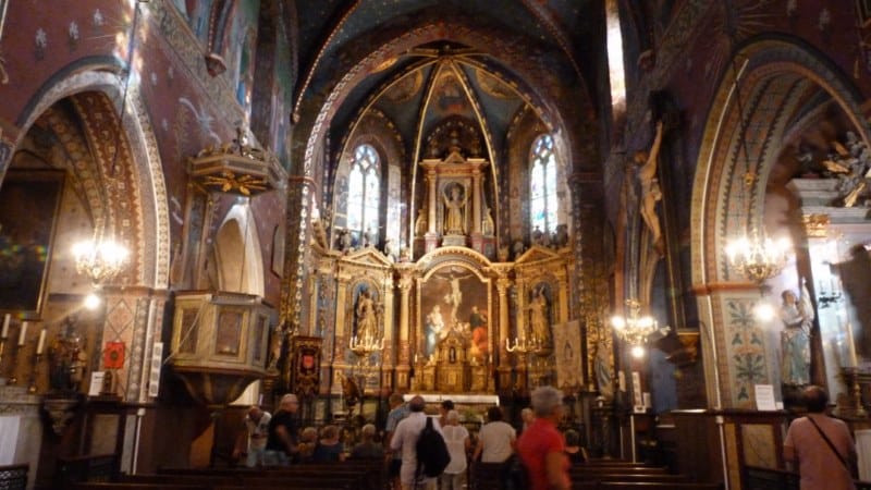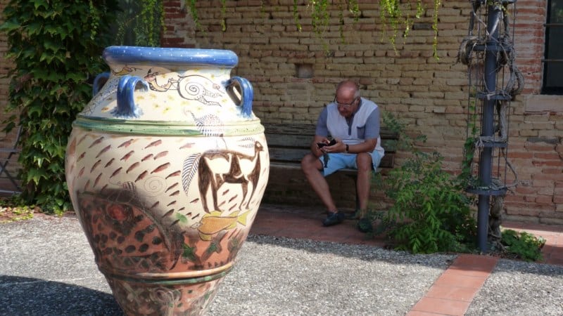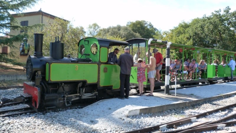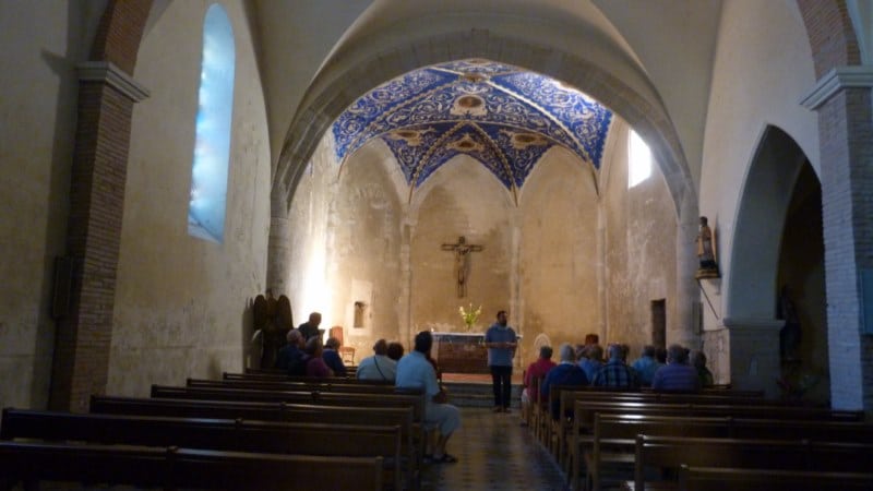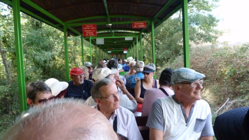 Dimanche 11: 9h00-Départ pour le petit train à vapeur du Haut-Quercy, puis vers le magnifique “JARDIN de MARTEL”. Super trajet rustique qui existe depuis longtemps, et a servi à de nombreuses occasions. Pour l’instant, nous sommes ravis et conquis par ce petit voyage à très grande vitesse (20km/h). – L’après-midi, nous avons assisté à une visite guidée du beau “Centre de Céramique de GIROUSSENS” Des Oeuvres magnifiques, originales et délicates y sont présentées. Ensuite, nous avons eu la chance de pouvoir faire ouvrir, par une vieille dame qui avait la clé, l’église recelant un trésor…En effet l’intérieur est un véritable joyaux par ses peintures murales, ses orenements dorés, son tabernacle..Bref ensemble magnifique.
