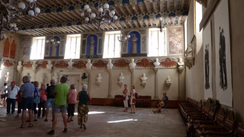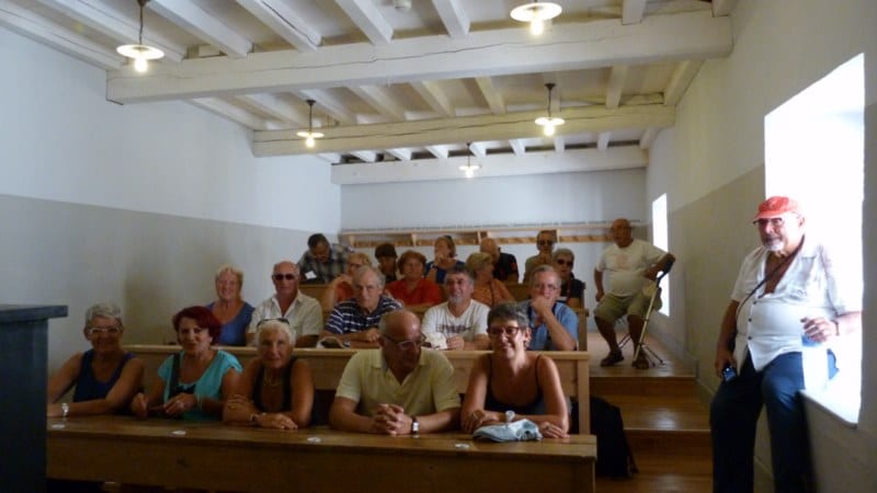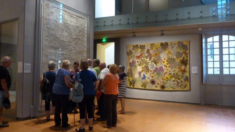 lundi 12: A 9h30, départ pur “SOREZE” qui doit son origine et son développement à l’abbaye bénédictine Notre-Dame de la Sagne, fondée en 754, par Pépin d’Aquitaine, au pied de la place forte de Verdinius devenue Puyvert, et connue aujourd’hui comme l’oppidum de Berniquaut. En 1682, les moines bénédictins mauristes y ouvrent une école appelée Séminaire. L’ensemble des bâtiments de l’Abbaye-École est étroitement lié et imbriqué à la structure médiévale du bourg : ses bâtiments, son parc de 6 hectares ainsi qu’une partie du village de Sorèze sont classés “Monument Historique” depuis 1988 par le Ministère de la Culture. Aujourd’hui, riche de son passé, Sorèze reste un haut-lieu historique et culturel. Le village de 3000 habitants, où subsistent encore de nombreux métiers d’artisanat d’art, son environnement naturel et l’Abbaye-École forment un ensemble qui retrace 12 siècles d’une histoire riche et mouvementée. Nous poursuivons et levons la tête vers le clôcher seul vestige de L’Abbaye Bénédictine, et entrons visiter cette ancienne et brillante école qui est devenue un Musée d’Art et une exposition d’oeuvres de broderie-tissage reconnue dans le monde. On nous invite à monter à l’étage voir ce qu’était une des salles de classe, ainsi qu’une petite chambre, et leur chapelle. Retour à l’aire de C.Cars de Durfort. Diner au restaurant-Bivouac.