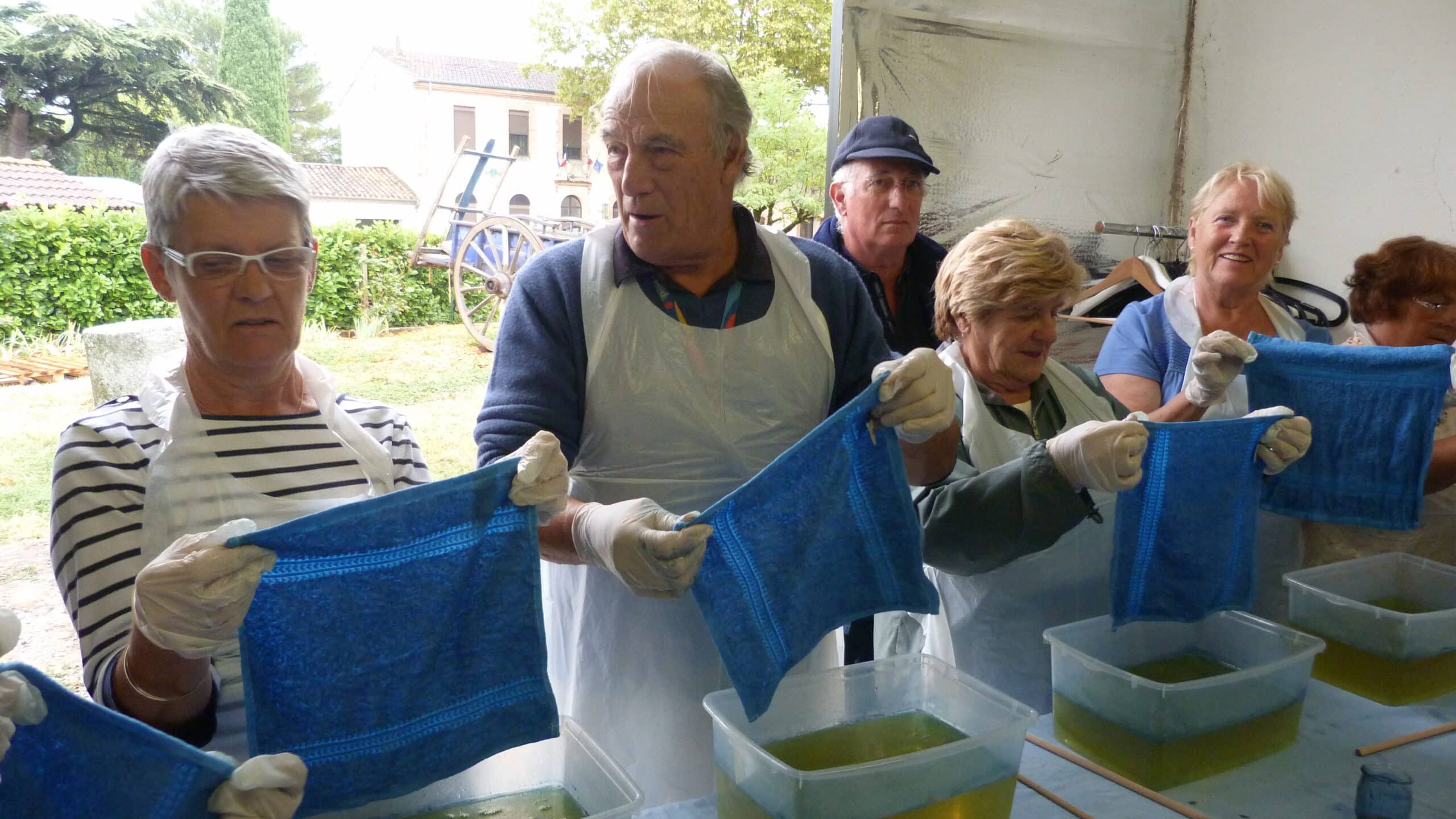 Conservation : Les pigments sont conservés dans une poudre appelée “agranat”, qui peut être utilisée pour des applications variées, y compris la peinture et la teinture. Cette méthode artisanale permet de créer un pigment bleu de haute qualité, utilisé dans la teinture textile et d’autres applications créatives. A midi, déjeuner à l’Auberge de Saint Julia. et visite de la ville fortifiée. Nous avons poursuivi notre parcours chez un teinturier qui nous a fait ” transformer ” des tissus blanc en couleur “PASTEL”. Nous avons bien rigi=olé Cette expérience a été très amusante. A revel, nous avons bien ri. Puis nous avons été voir des vitrines spécialisées dans les vêtements couleur pastel., puis retour à DURFORT. A 18h00 apéritif de clôture.