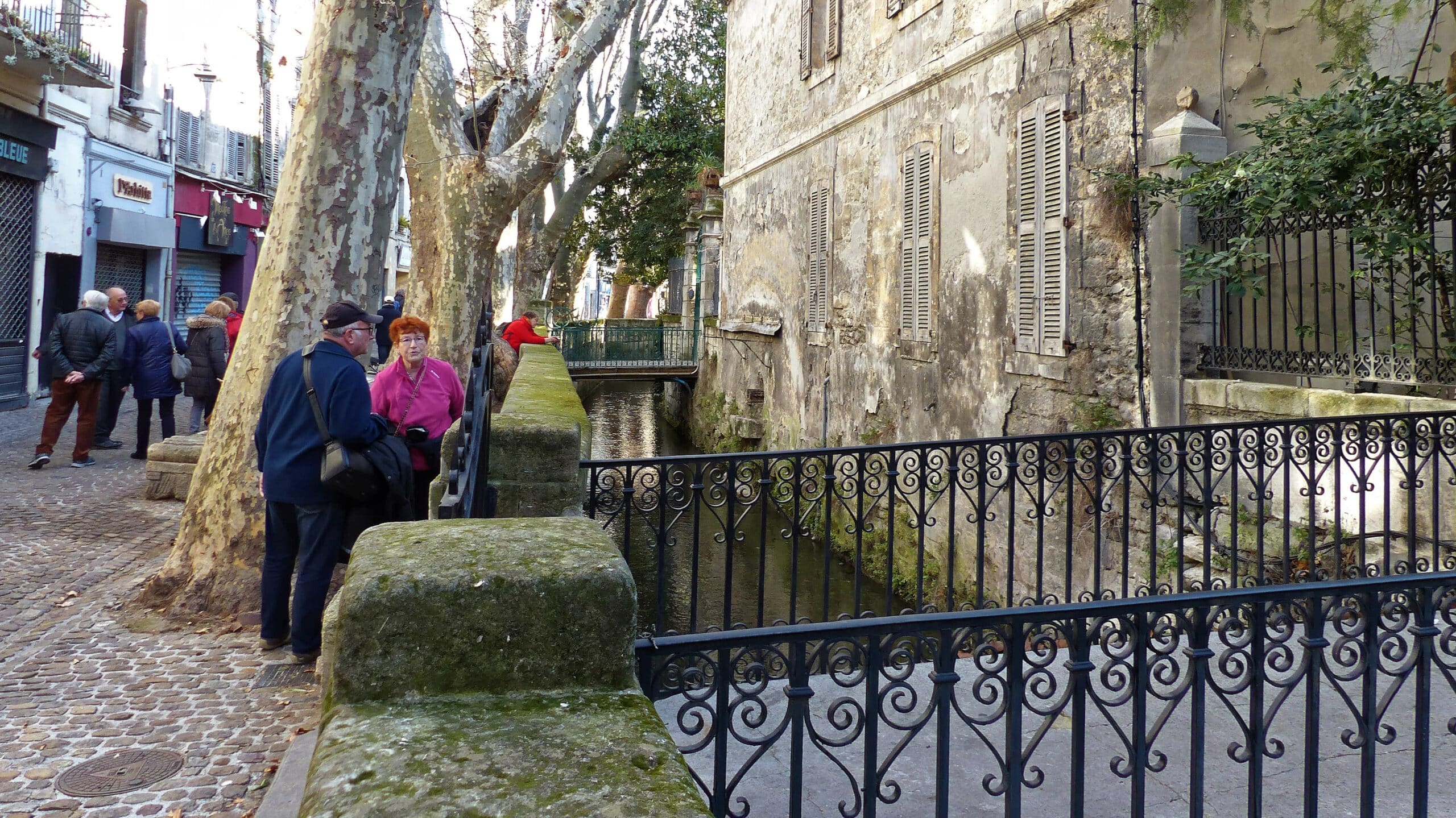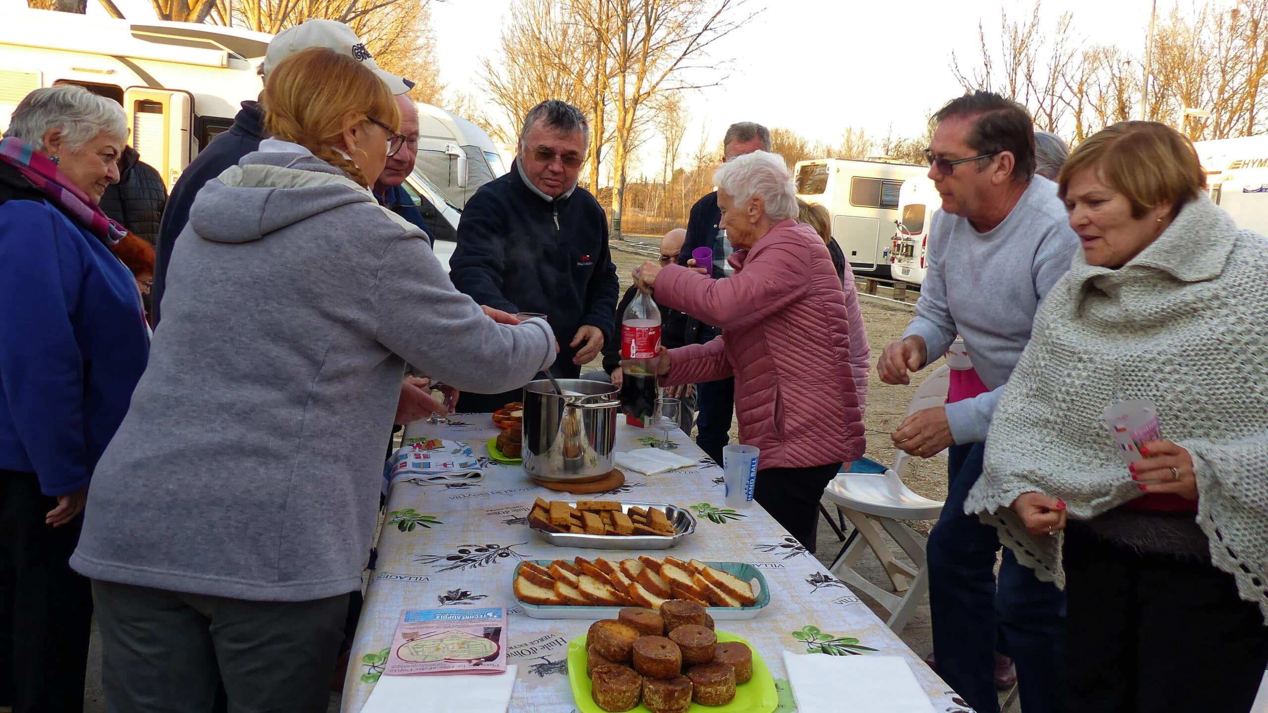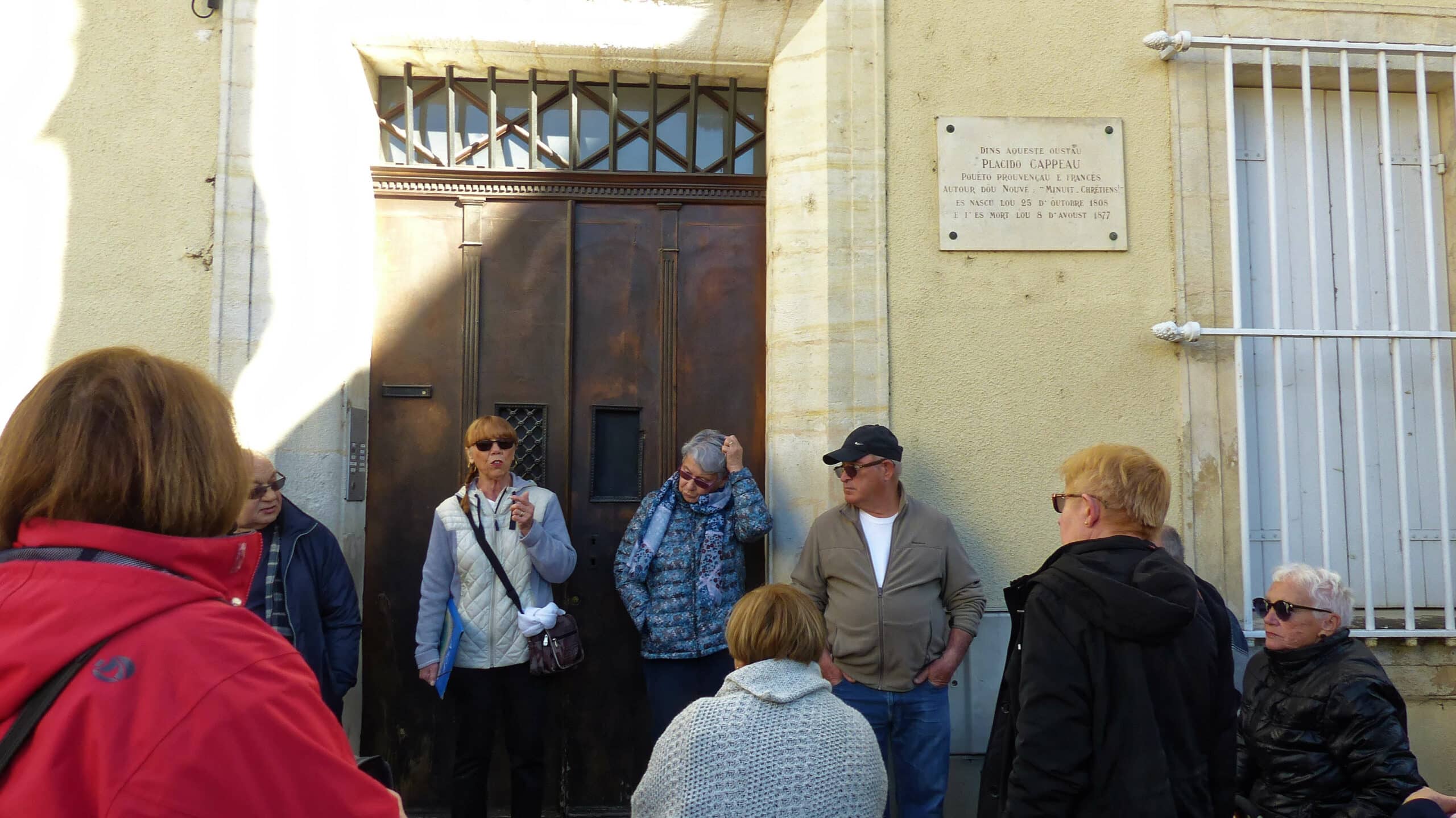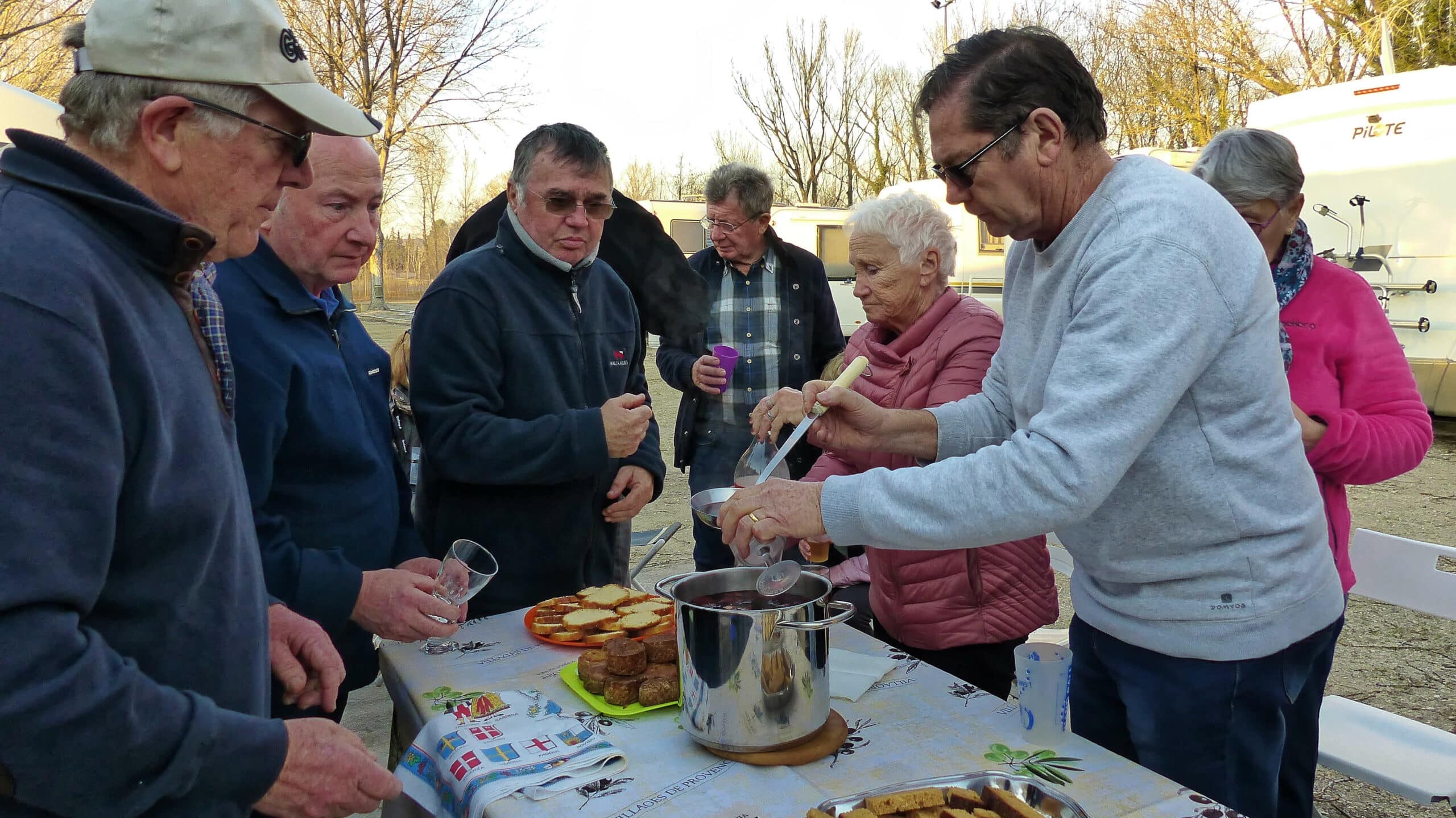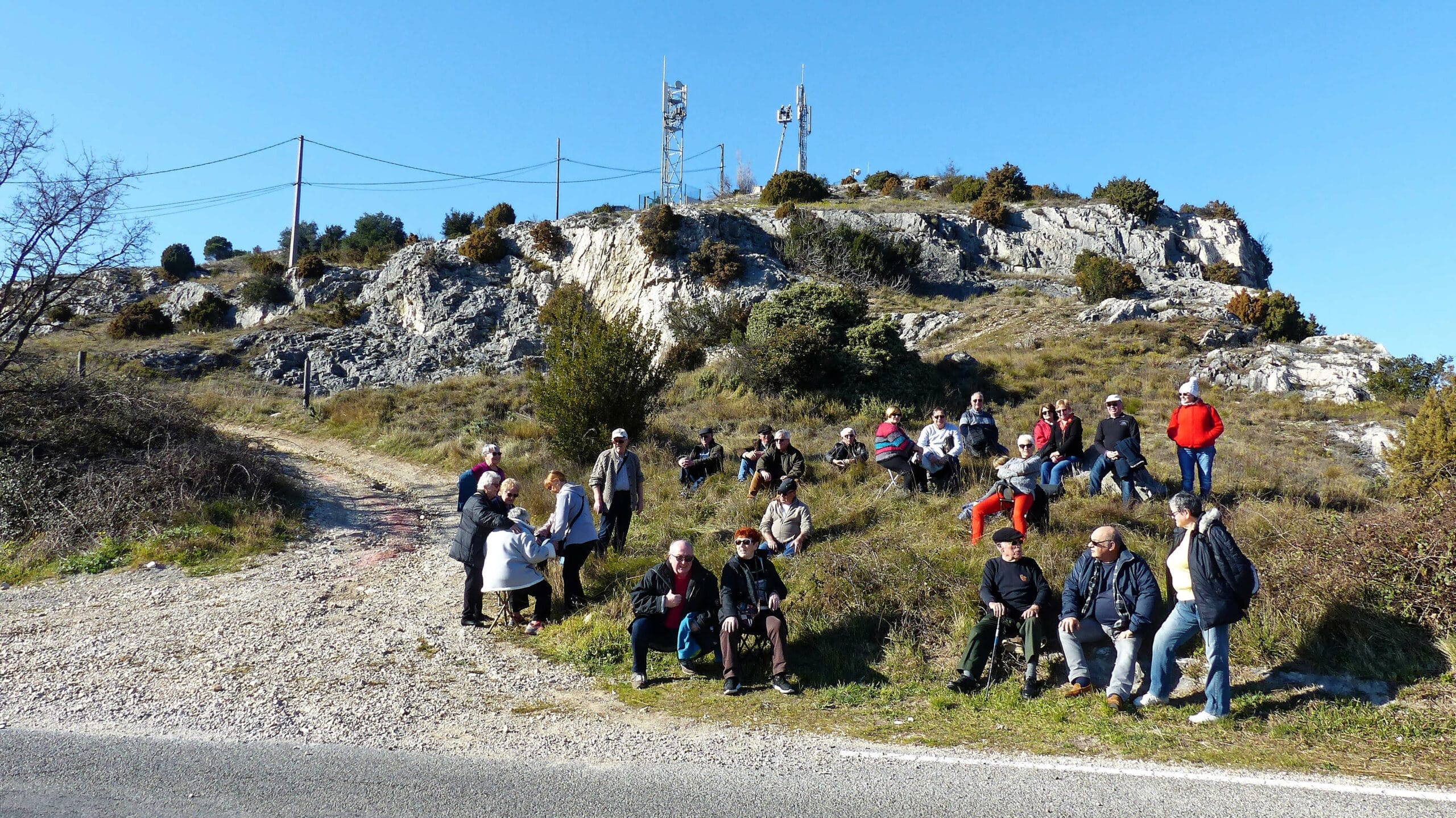 Vendredi 15 février: Dès le matin, direction vers ROQUEMAURE, pour une installation de TROIS jours sur le camping du stade, gracieusement mis à notre disposition par la municipalité. Dès la présence tous les participants, un apéritif de bien venue à été servi. L’Après midi, nous avons commencé par une balade/découverte de Roquemaure, guidés par nos organisateurs Mireille et Gérard Contardo. Mireille nous informe qu’il y a eu, ici, le passage de nombreux trains de déportés vers les camps de concentration. Certains prisonniers ont pu s’évader. La visite de la ville nous a amené devant la maison de naisssance de Placide CAPPEAU, qui a écrit le beau chant de Noël ” MINUIT CHRETIEN”. Ensuite, nous poursuivons par une petite marche pour découvrir une belle vue sur les ruines de châteaux alentours.