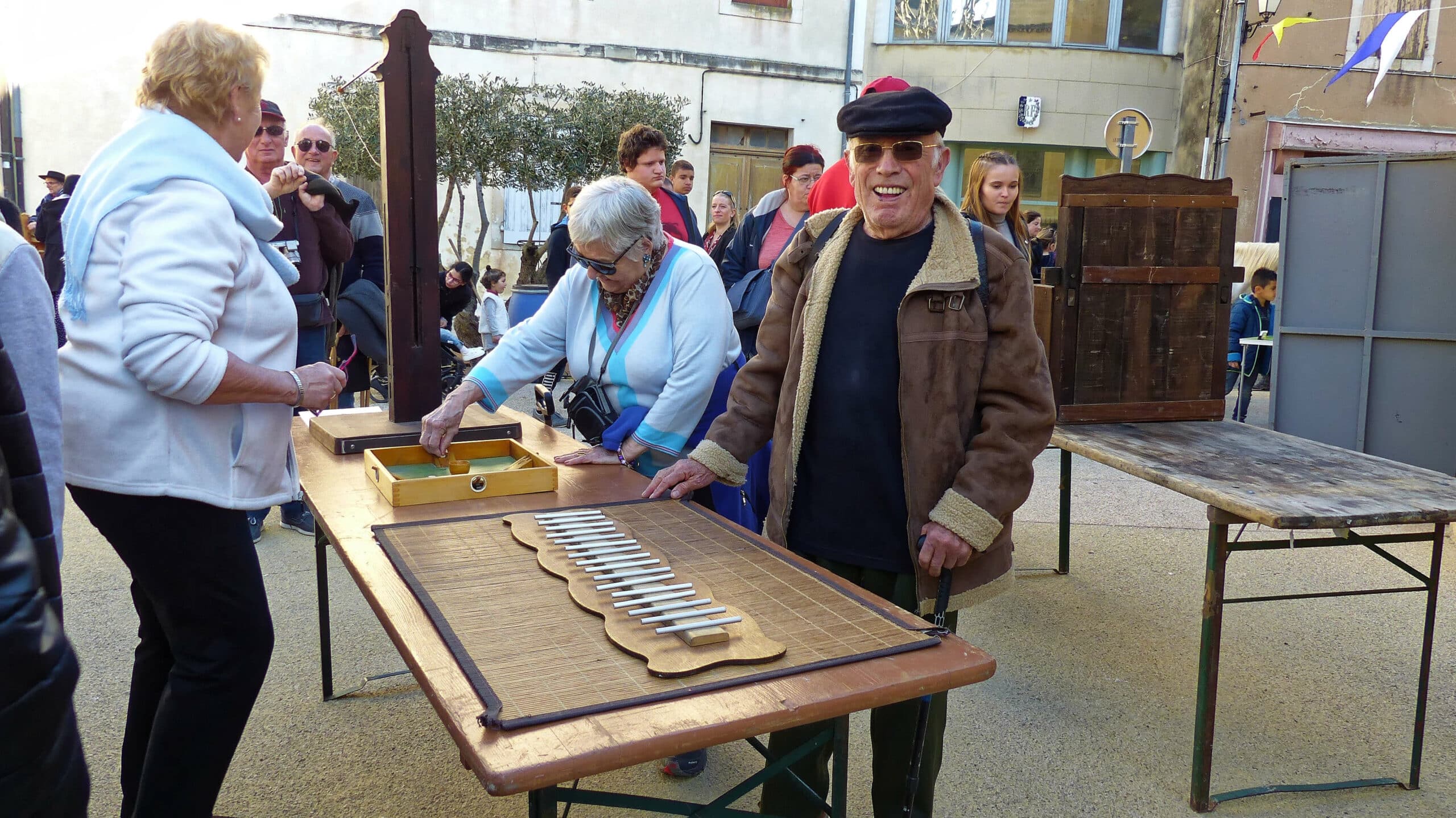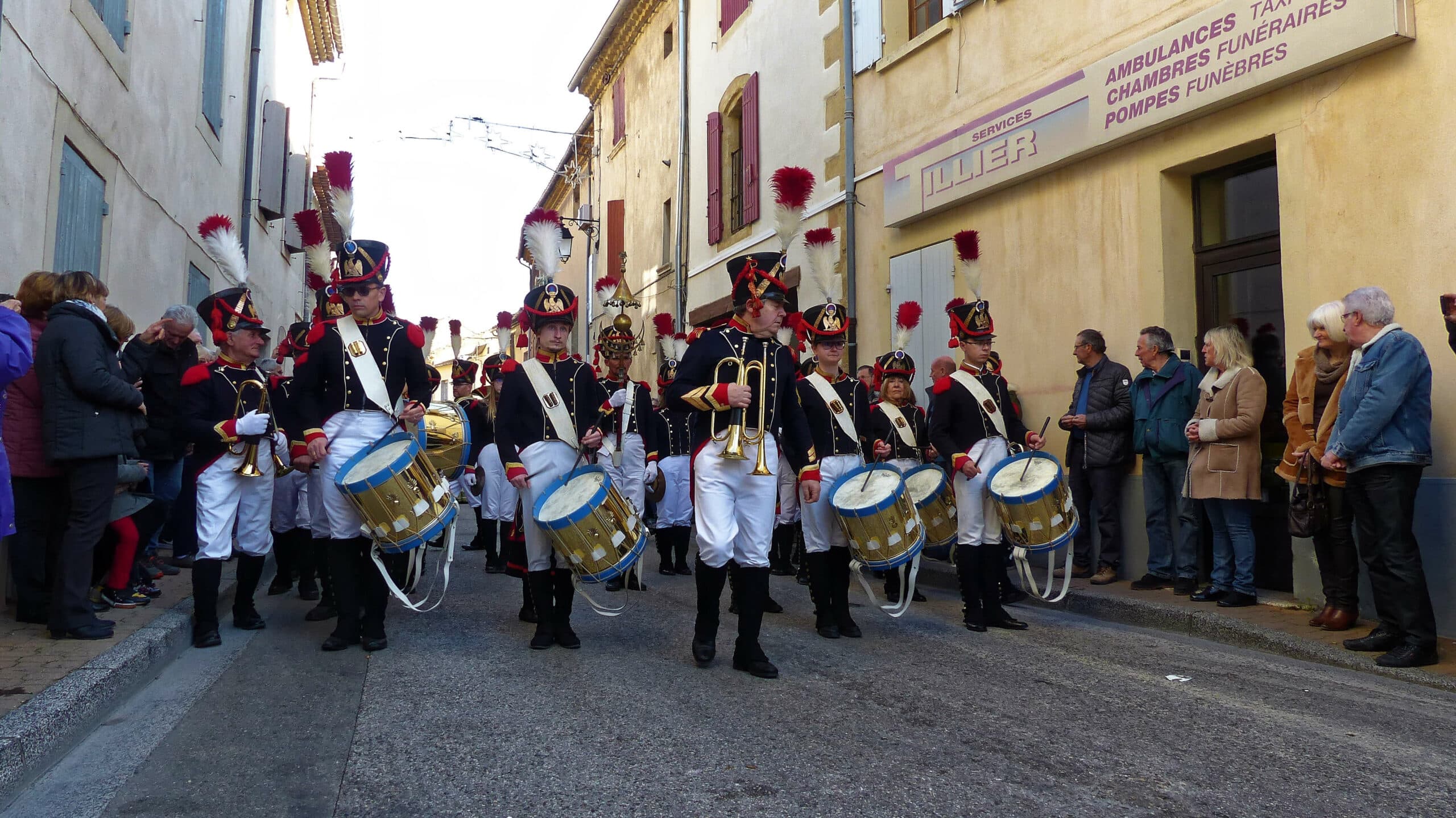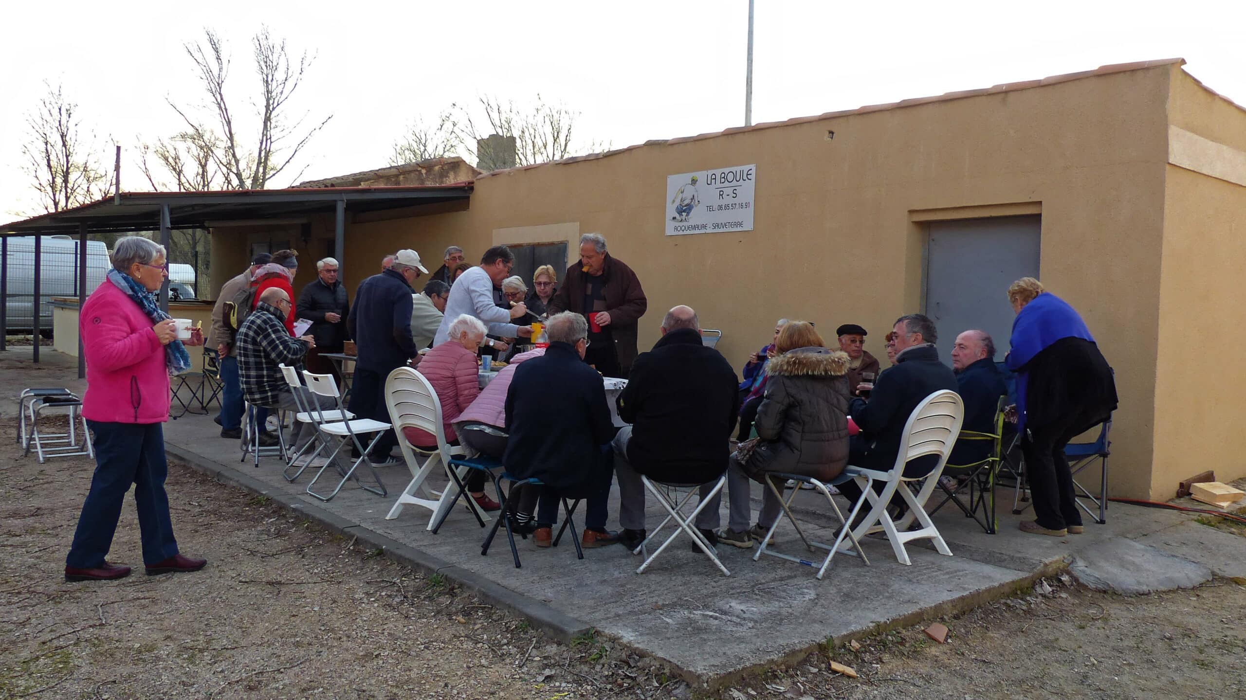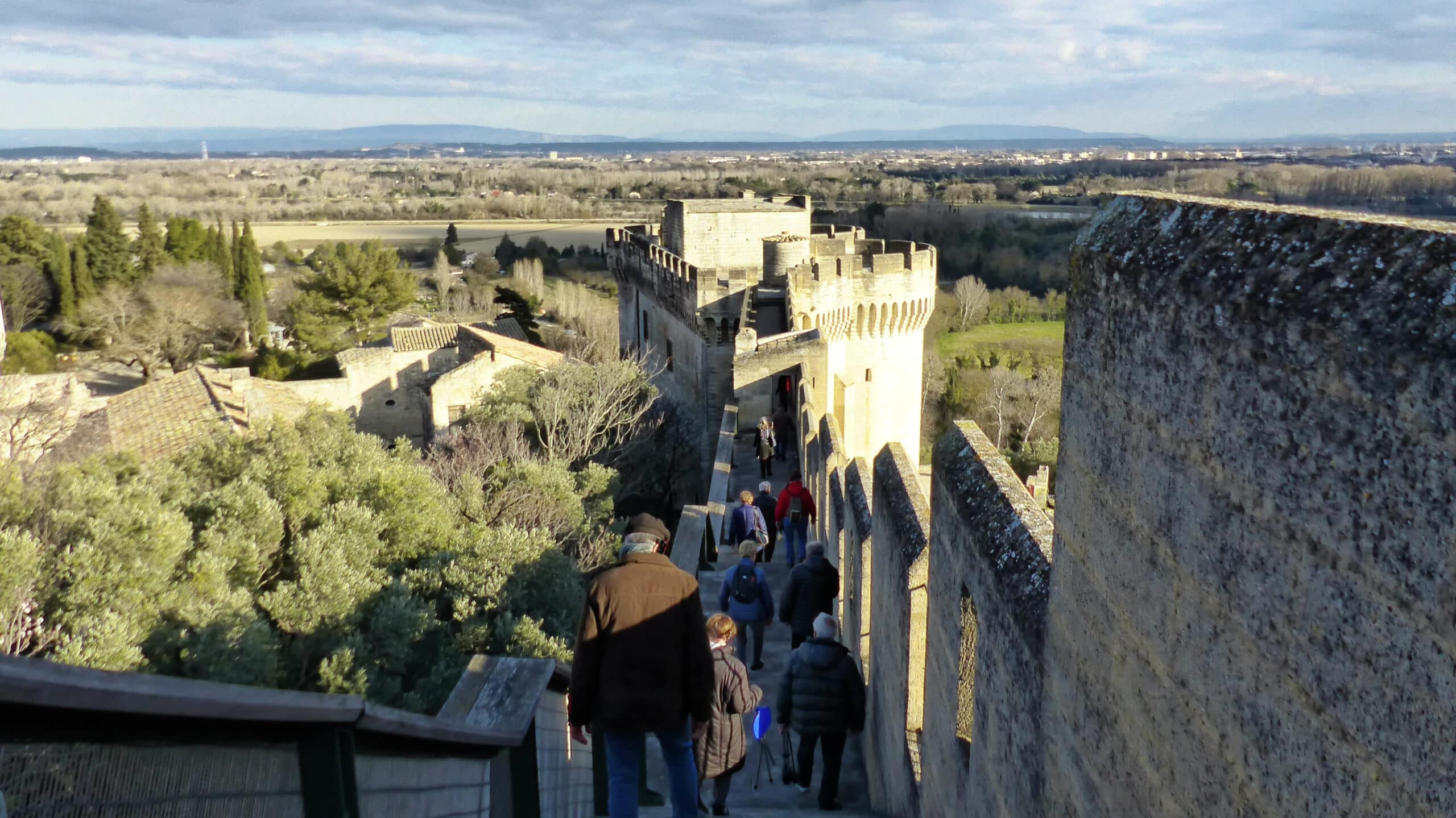 Vendredi 15 février: Dès le matin, direction vers ROQUEMAURE, pour une installation de TROIS jours sur le camping du stade, gracieusement mis à notre disposition par la municipalité. Dès la présence tous les participants, un apéritif de bien venue à été servi. L’Après midi, nous avons commencé par une balade/découverte de Roquemaure, guidés par nos organisateurs Mireille et Gérard Contardo. Mireille nous informe qu’il y a eu, ici, le passage de nombreux trains de déportés vers les camps de concentration. Certains prisonniers ont pu s’évader. La visite de la ville nous a amené devant la maison de naisssance de Placide CAPPEAU, qui a écrit le beau chant de Noël ” MINUIT CHRETIEN”. Ensuite, nous poursuivons par une petite marche pour découvrir une belle vue sur les ruines de châteaux alentours.