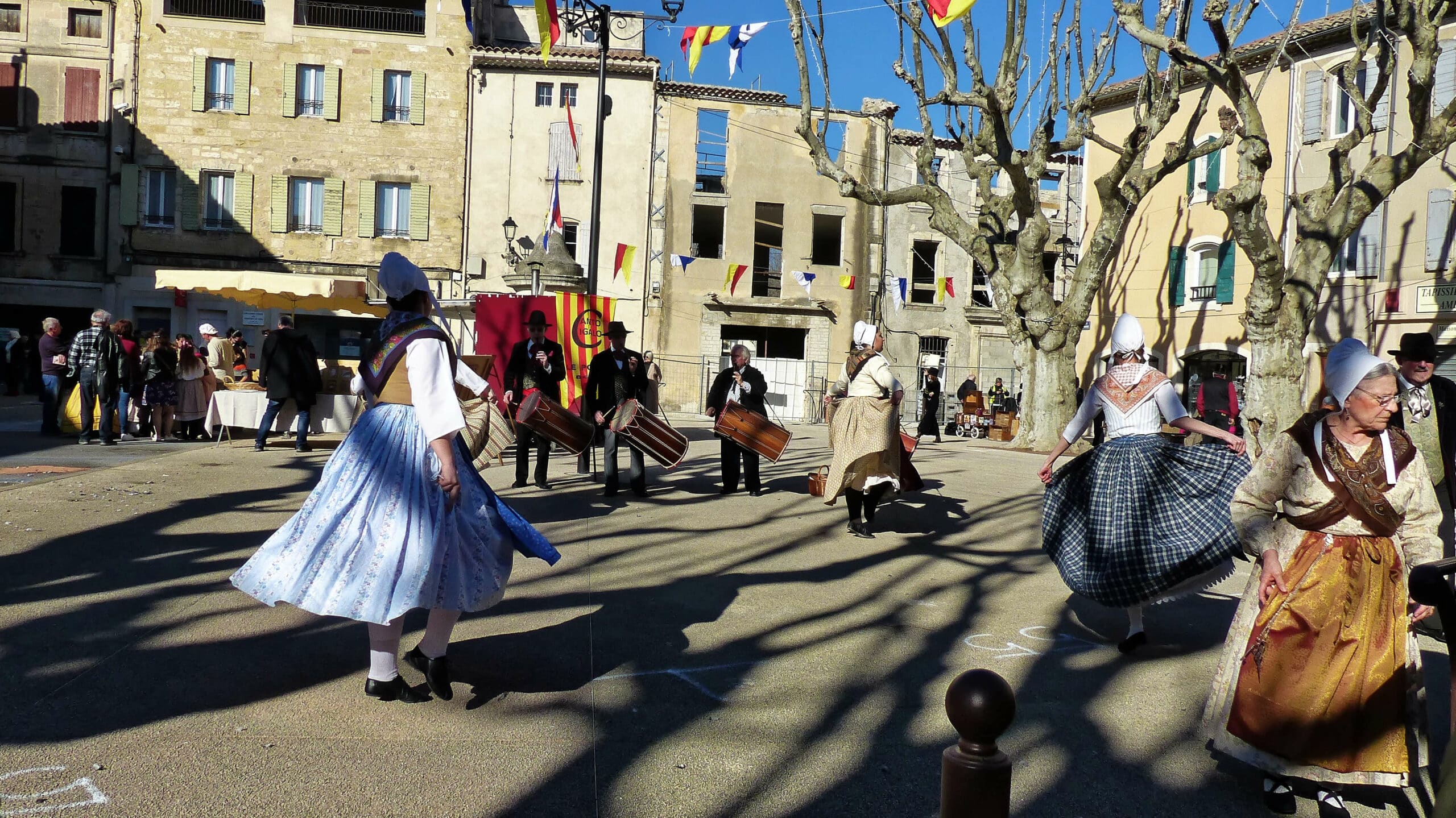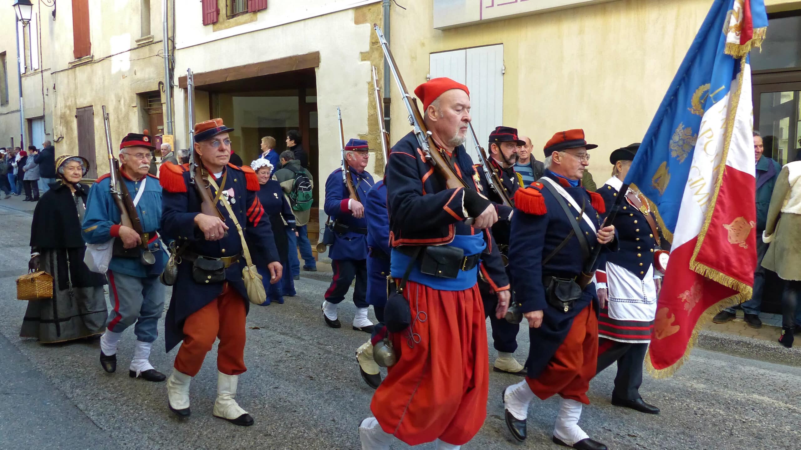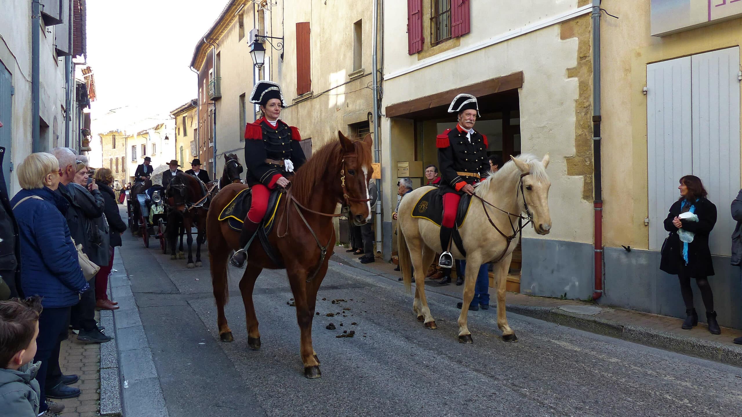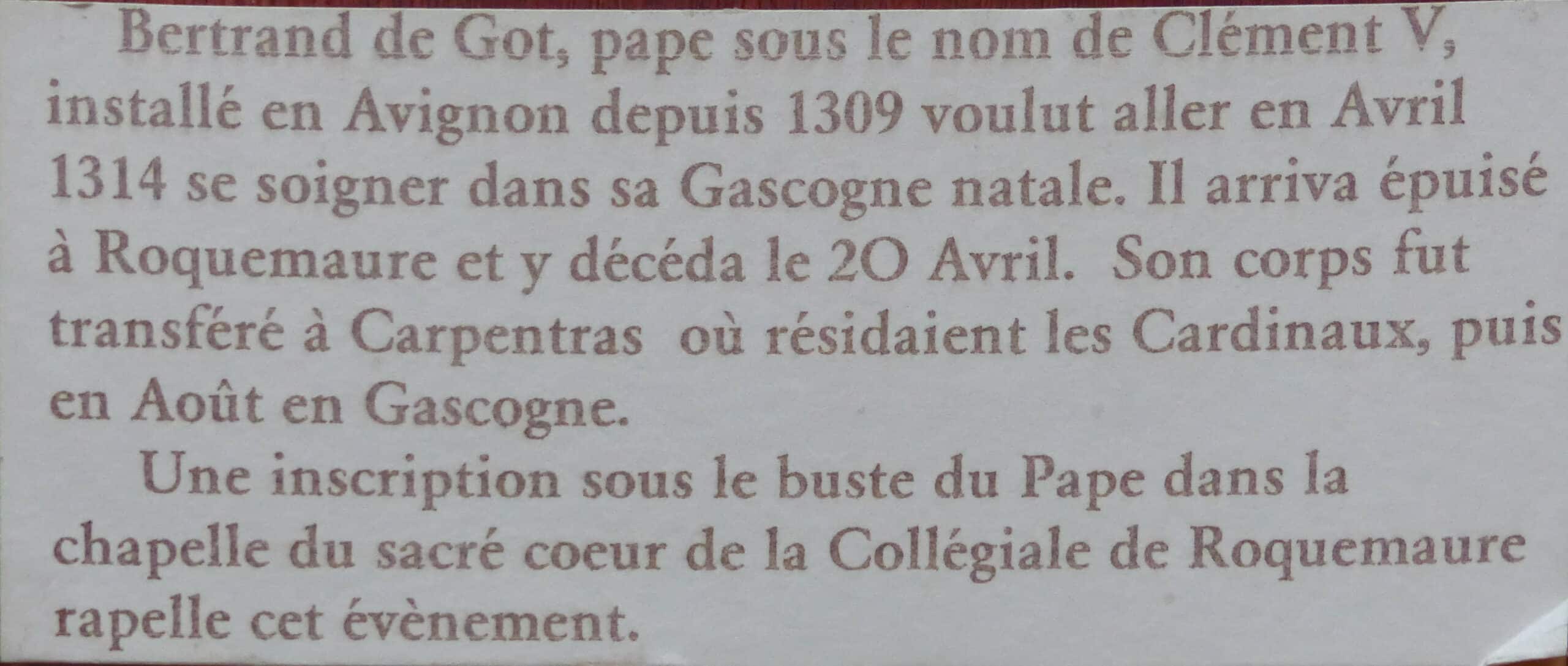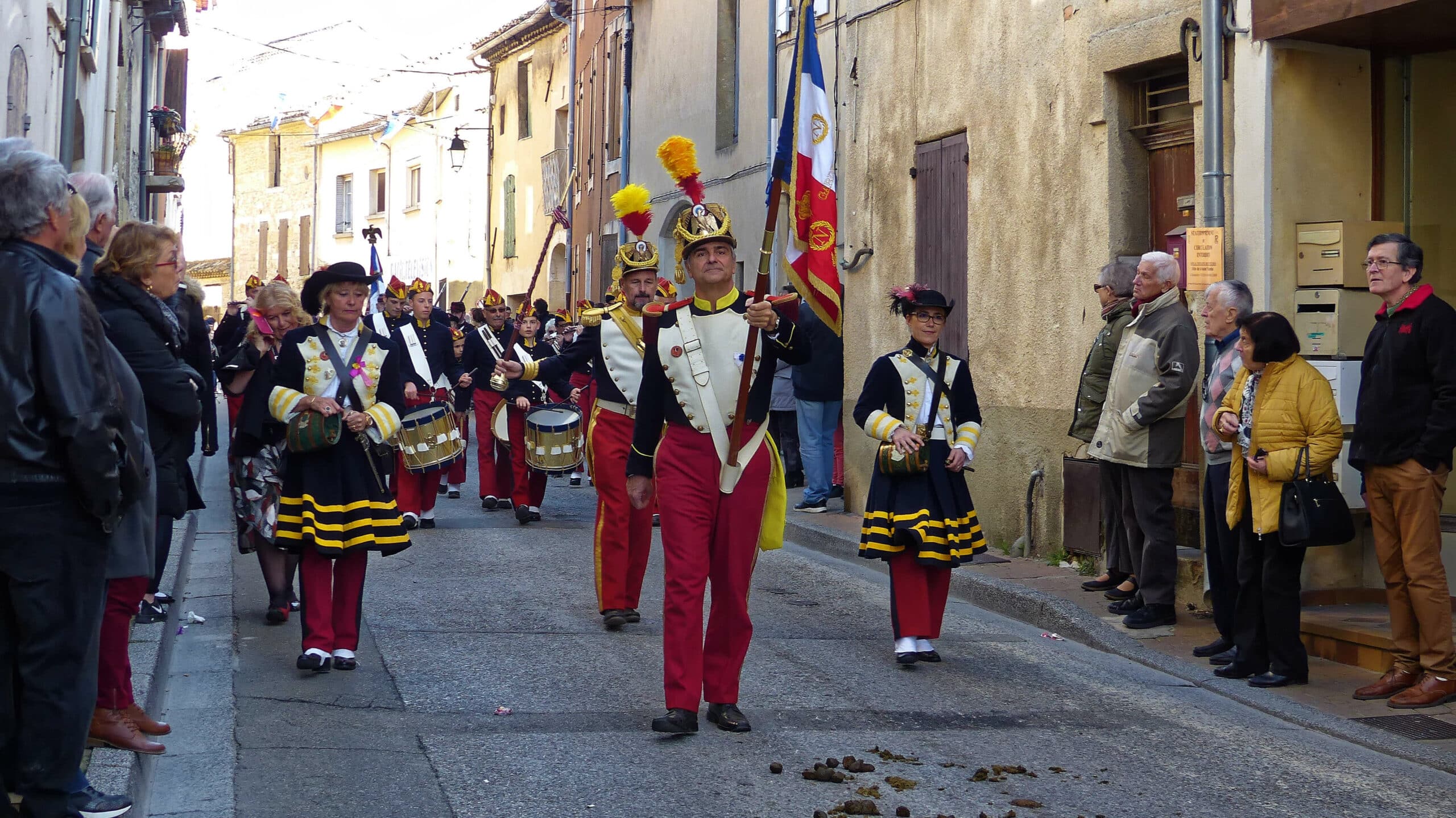 Vendredi 15 février: Dès le matin, direction vers ROQUEMAURE, pour une installation de TROIS jours sur le camping du stade, gracieusement mis à notre disposition par la municipalité. Dès la présence tous les participants, un apéritif de bien venue à été servi. L’Après midi, nous avons commencé par une balade/découverte de Roquemaure, guidés par nos organisateurs Mireille et Gérard Contardo. Mireille nous informe qu’il y a eu, ici, le passage de nombreux trains de déportés vers les camps de concentration. Certains prisonniers ont pu s’évader. La visite de la ville nous a amené devant la maison de naisssance de Placide CAPPEAU, qui a écrit le beau chant de Noël ” MINUIT CHRETIEN”. Ensuite, nous poursuivons par une petite marche pour découvrir une belle vue sur les ruines de châteaux alentours.