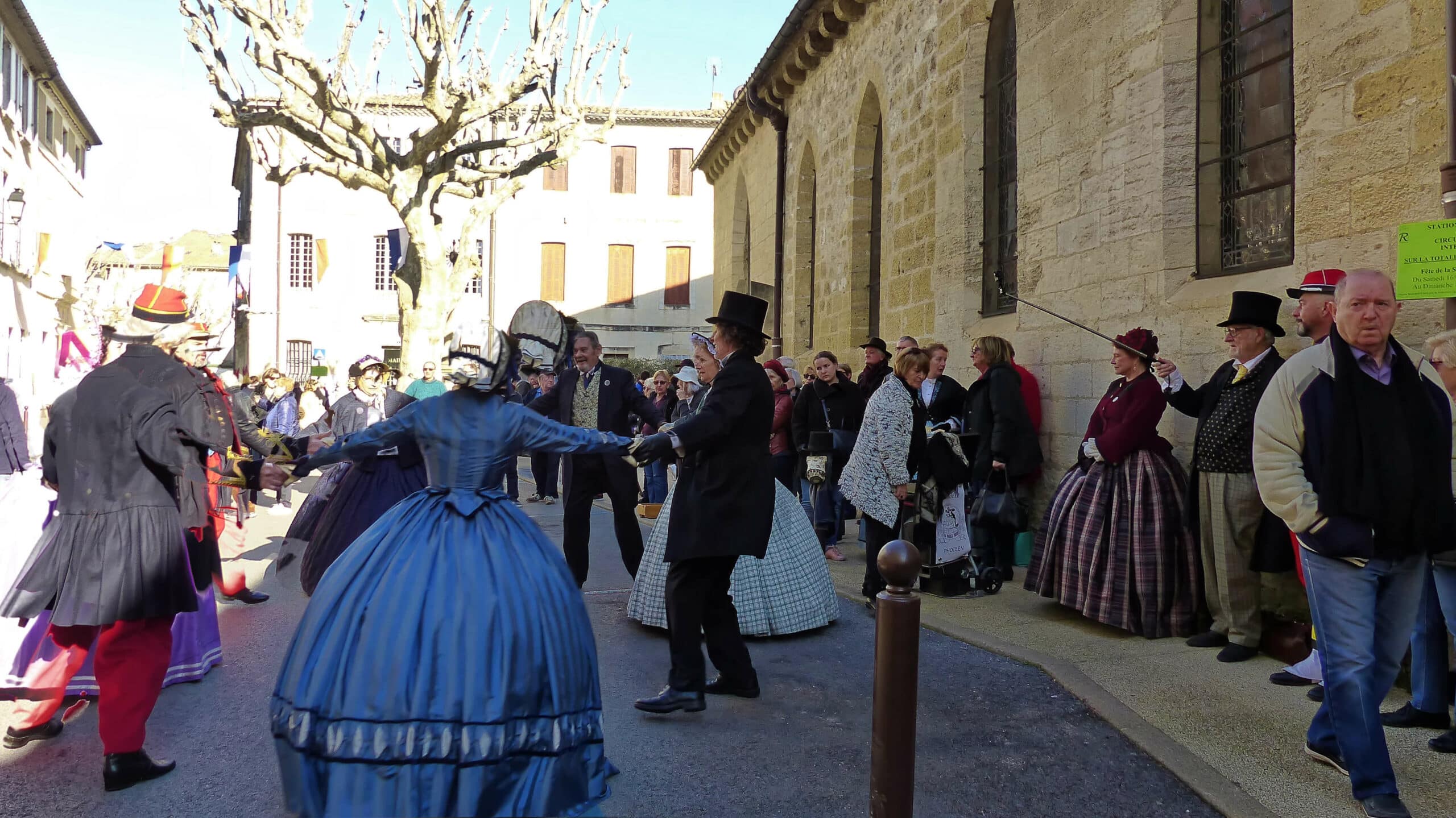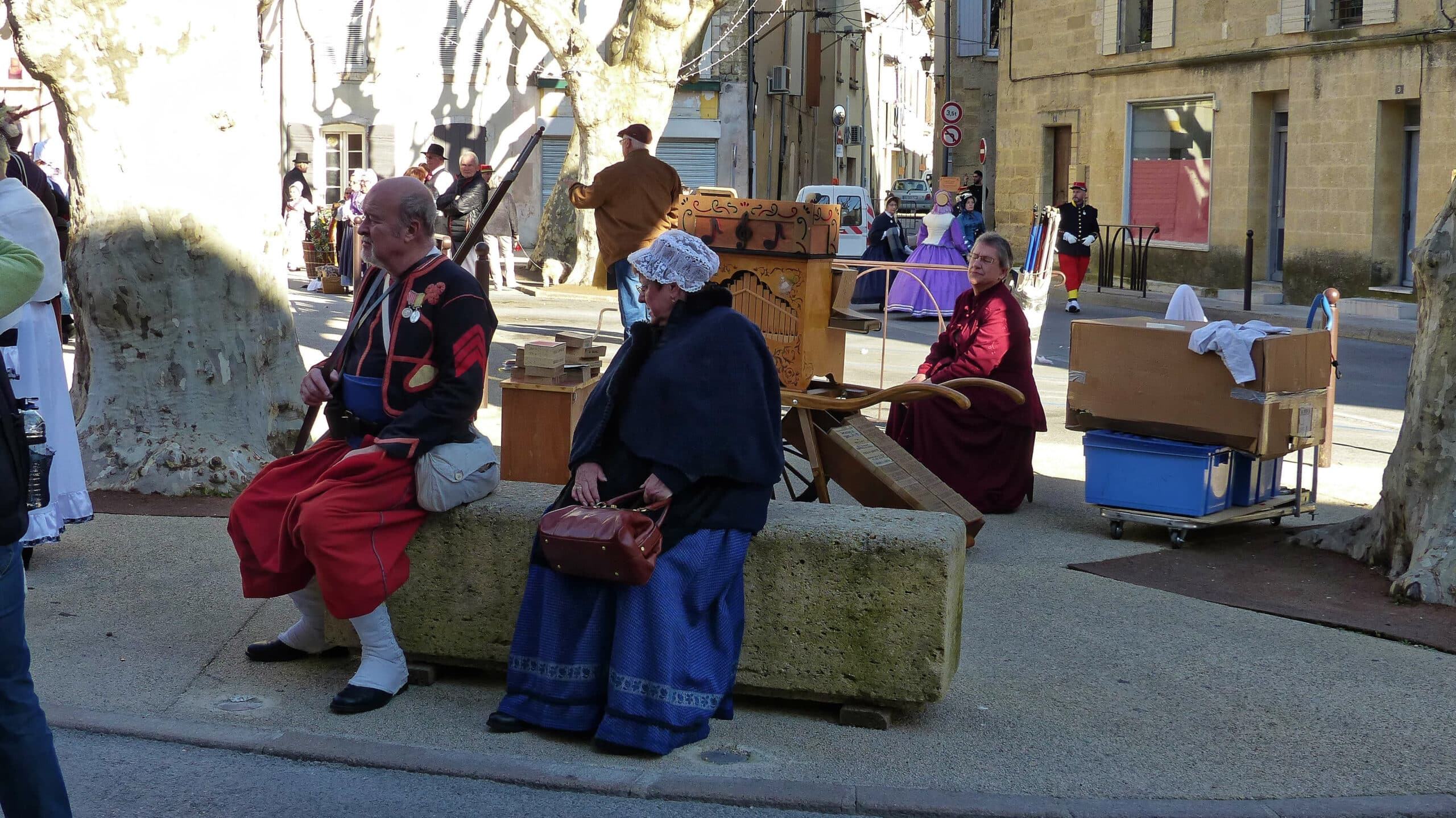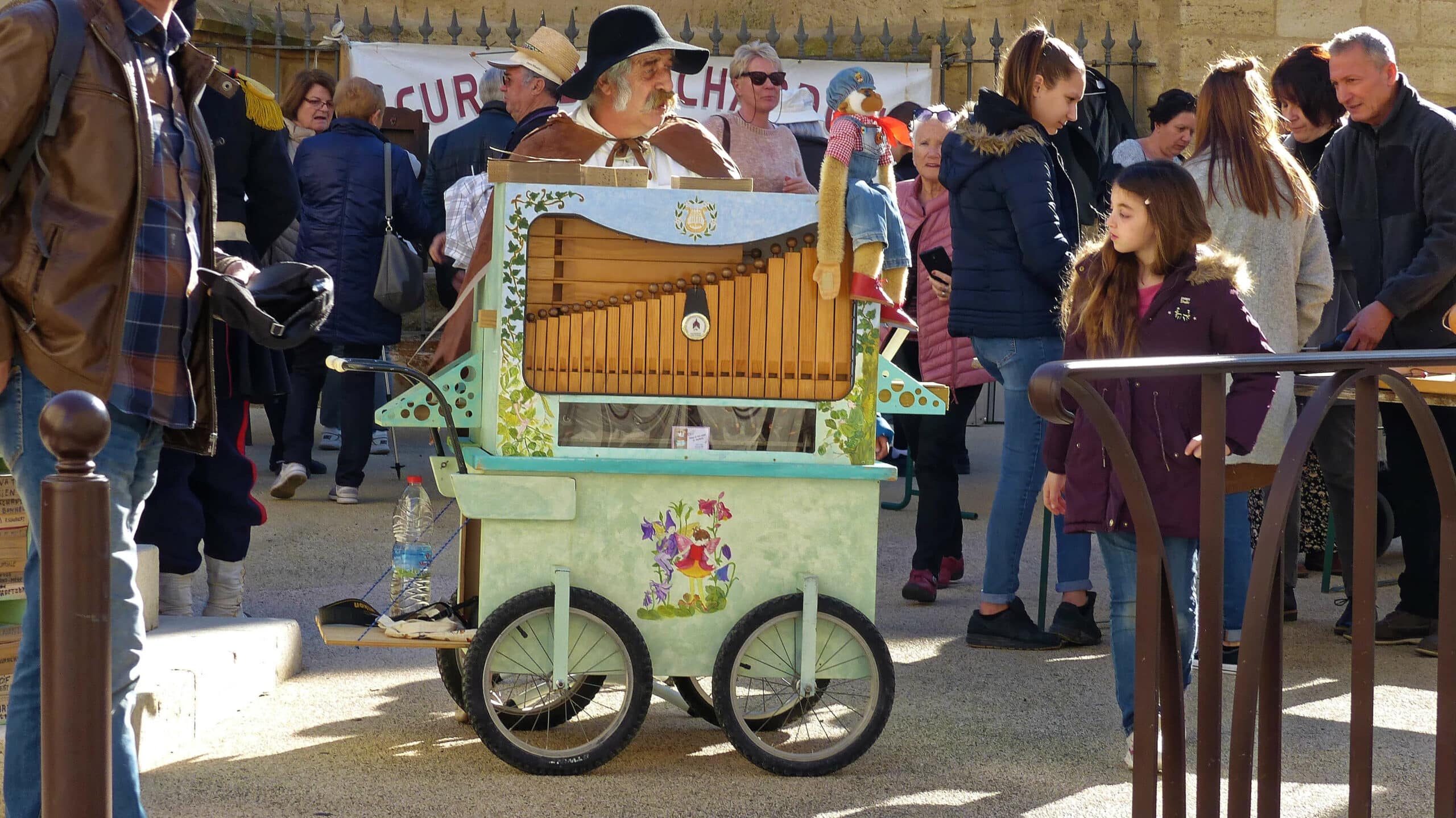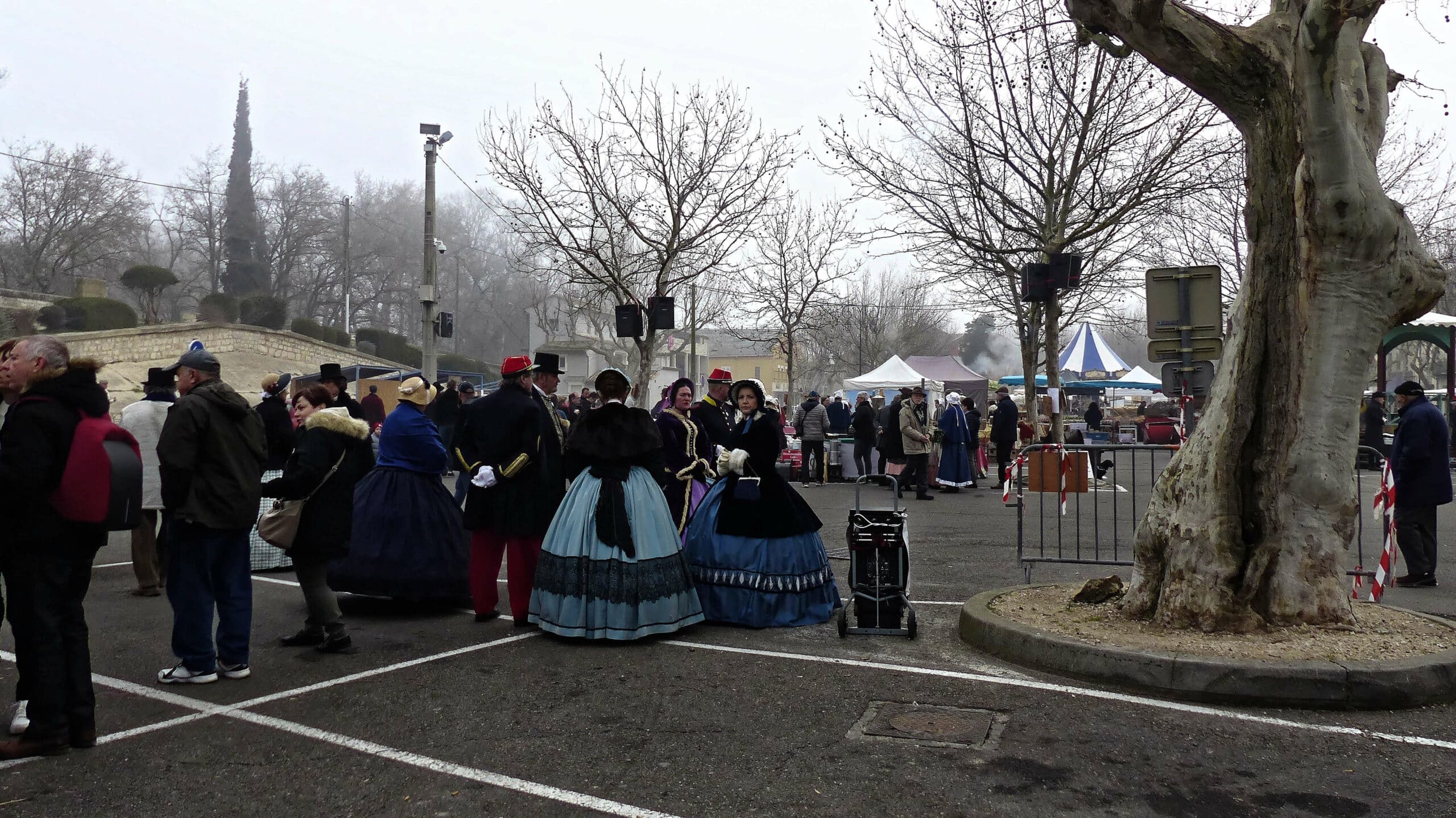 Samedi 16 fevrier: Nous déambulons dans les rues et la place principale particulièrement animées. Des couples en habits d’époque début 19 ème siècle se montrent avec joie. Les femmes étaient belles dans leurs longues robes. Elles se protégeaient du soleil par de jolies ombrelles à dentelles. De nombreuses “Orgues de Barbarie” toutes disséminées dans le centre-ville. leurs propriétaires nous invitent à tourner la roue pour lancer la musique initiée par des cartes cartonnées perforées. Sur la grand-place, de nombreux artisans locaux, vendent leurs produits bio ainsi que d’autres articles d’antan. Des jeux anciens d’époque, en bois, attirent notre attention, mais ces curiosités nous agacent par leurs difficultés. Le soir, nos gentils organisateurs, aidés d’Alain Hugues, nous ont fait un excellent vin chaud très apprécié par ce temps très frais.