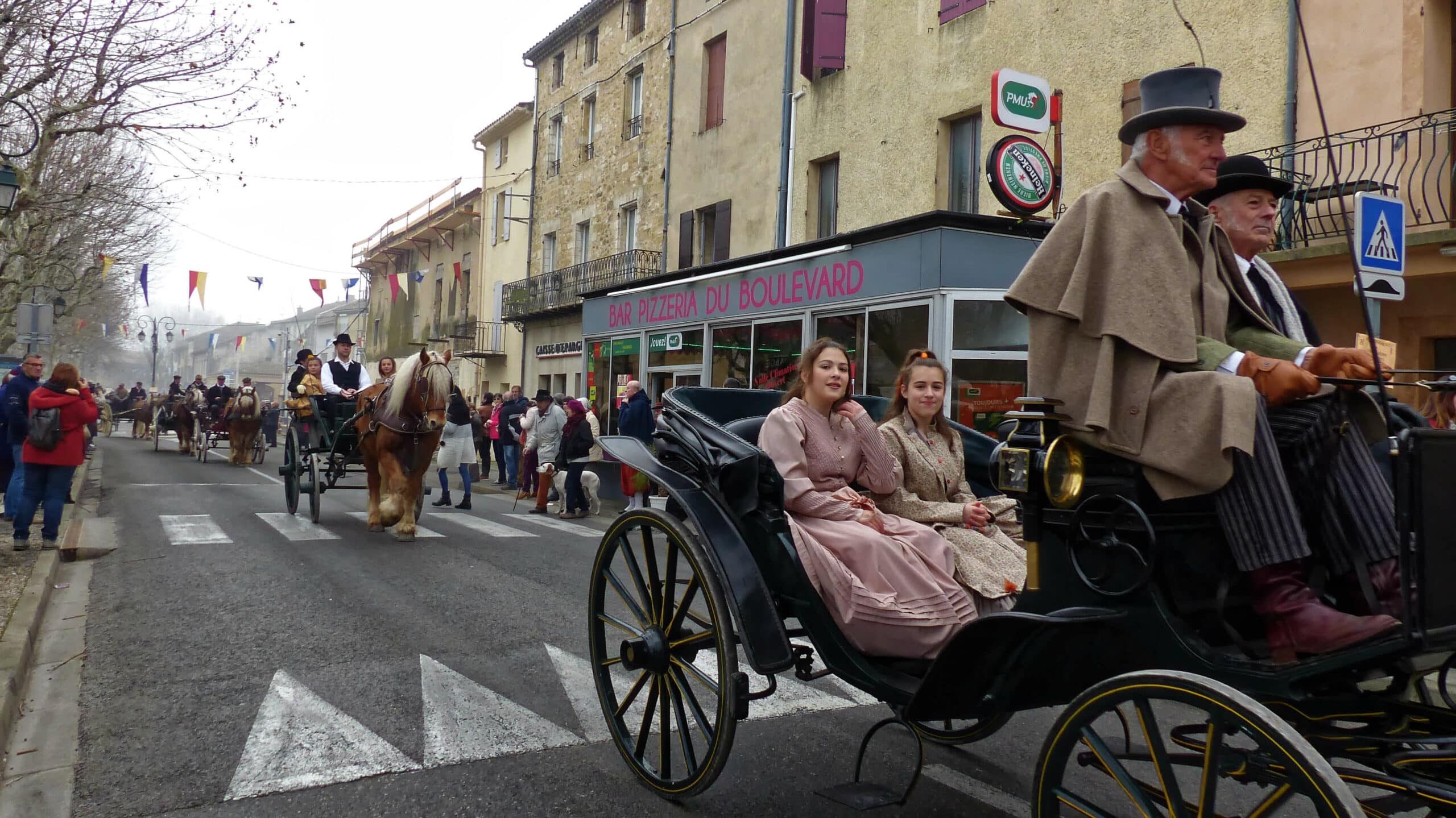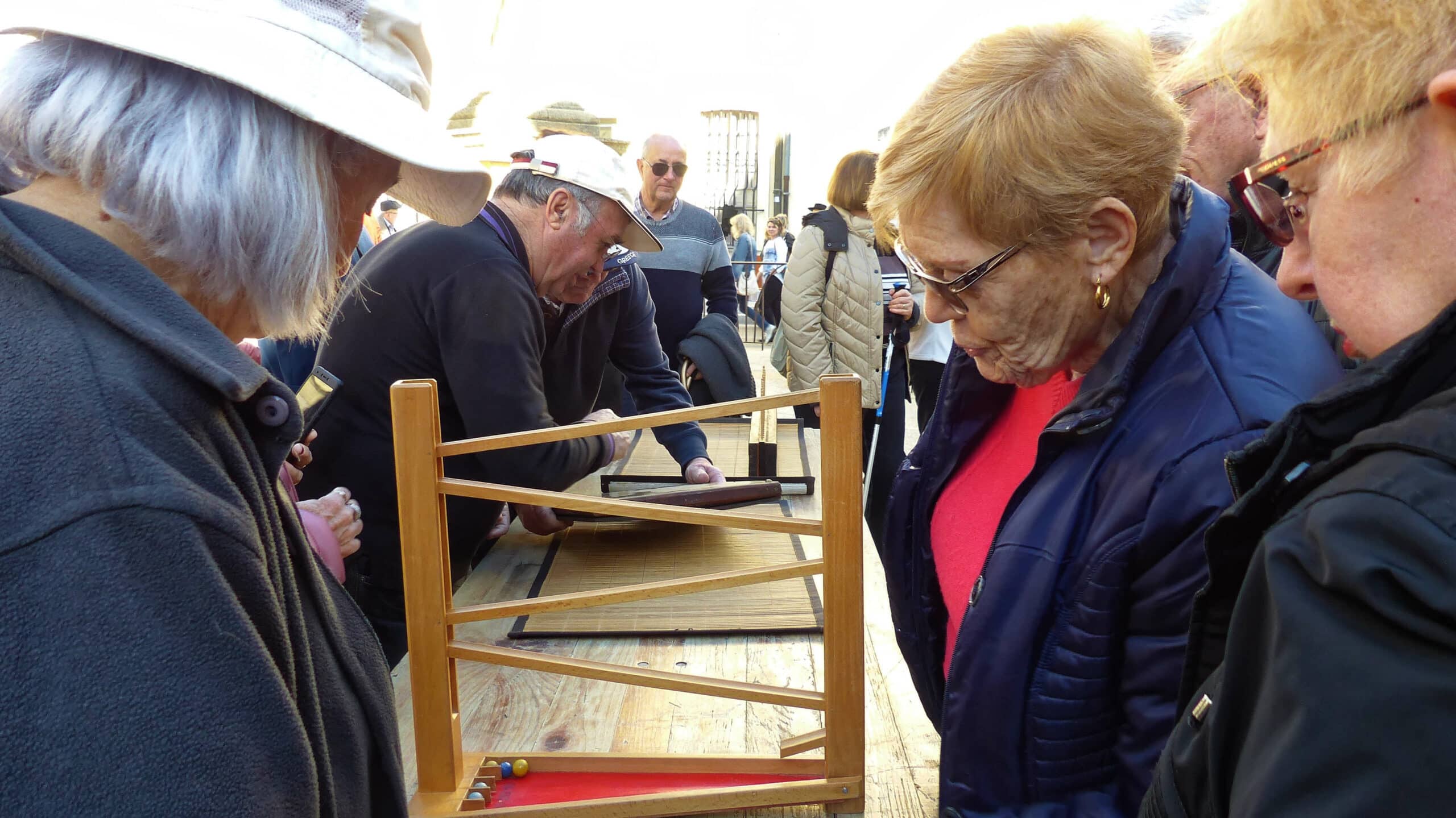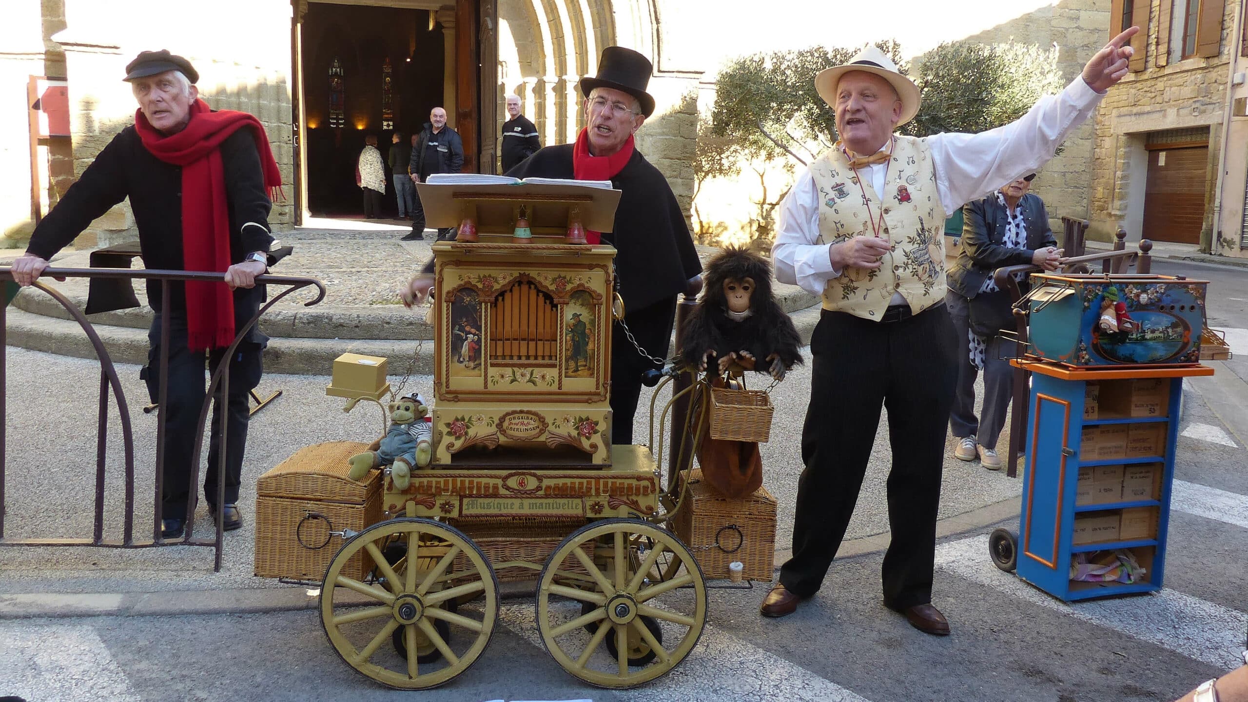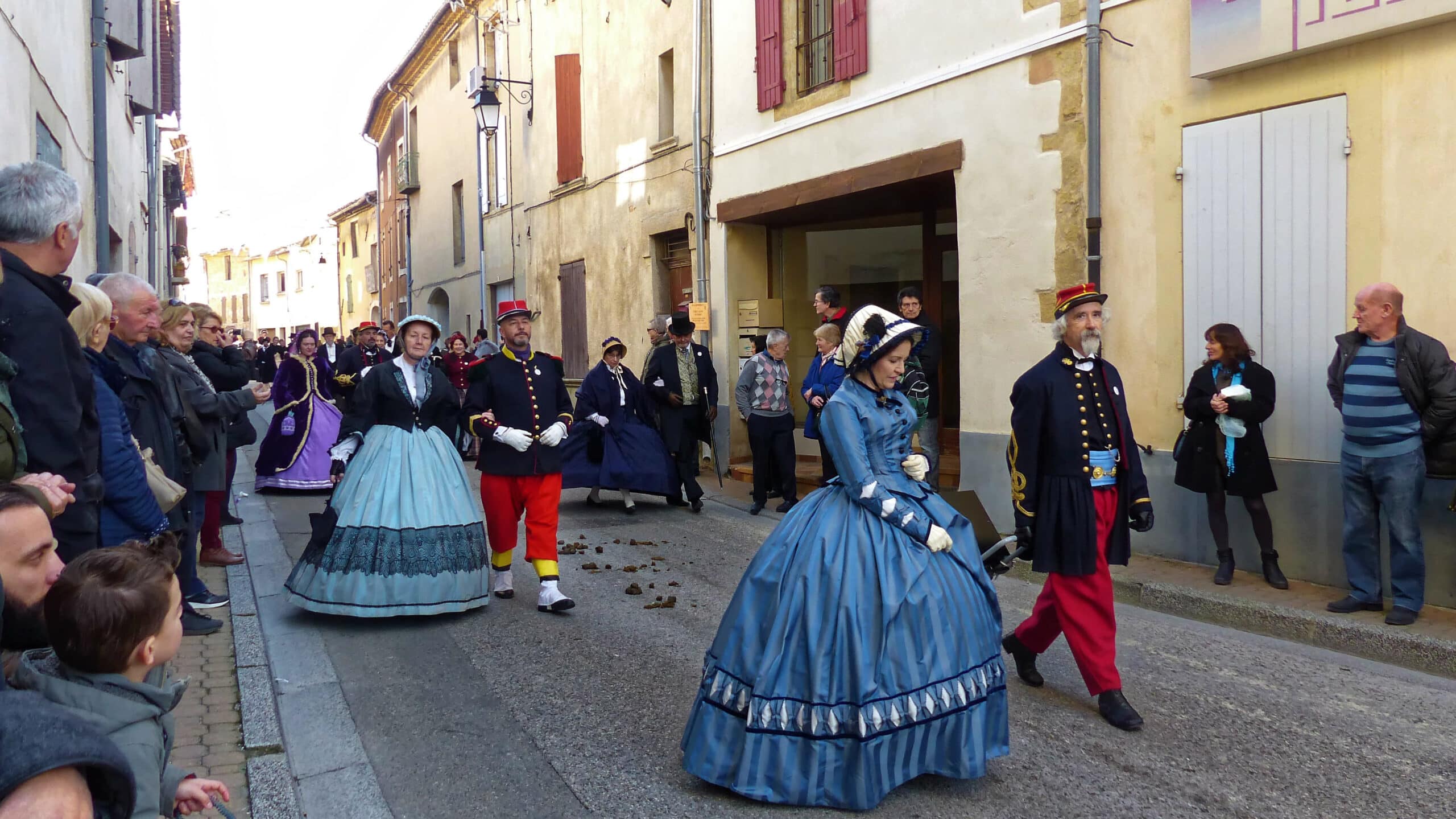 Samedi 16 fevrier: Nous déambulons dans les rues et la place principale particulièrement animées. Des couples en habits d’époque début 19 ème siècle se montrent avec joie. Les femmes étaient belles dans leurs longues robes. Elles se protégeaient du soleil par de jolies ombrelles à dentelles. De nombreuses “Orgues de Barbarie” toutes disséminées dans le centre-ville. leurs propriétaires nous invitent à tourner la roue pour lancer la musique initiée par des cartes cartonnées perforées. Sur la grand-place, de nombreux artisans locaux, vendent leurs produits bio ainsi que d’autres articles d’antan. Des jeux anciens d’époque, en bois, attirent notre attention, mais ces curiosités nous agacent par leurs difficultés. Le soir, nos gentils organisateurs, aidés d’Alain Hugues, nous ont fait un excellent vin chaud très apprécié par ce temps très frais.