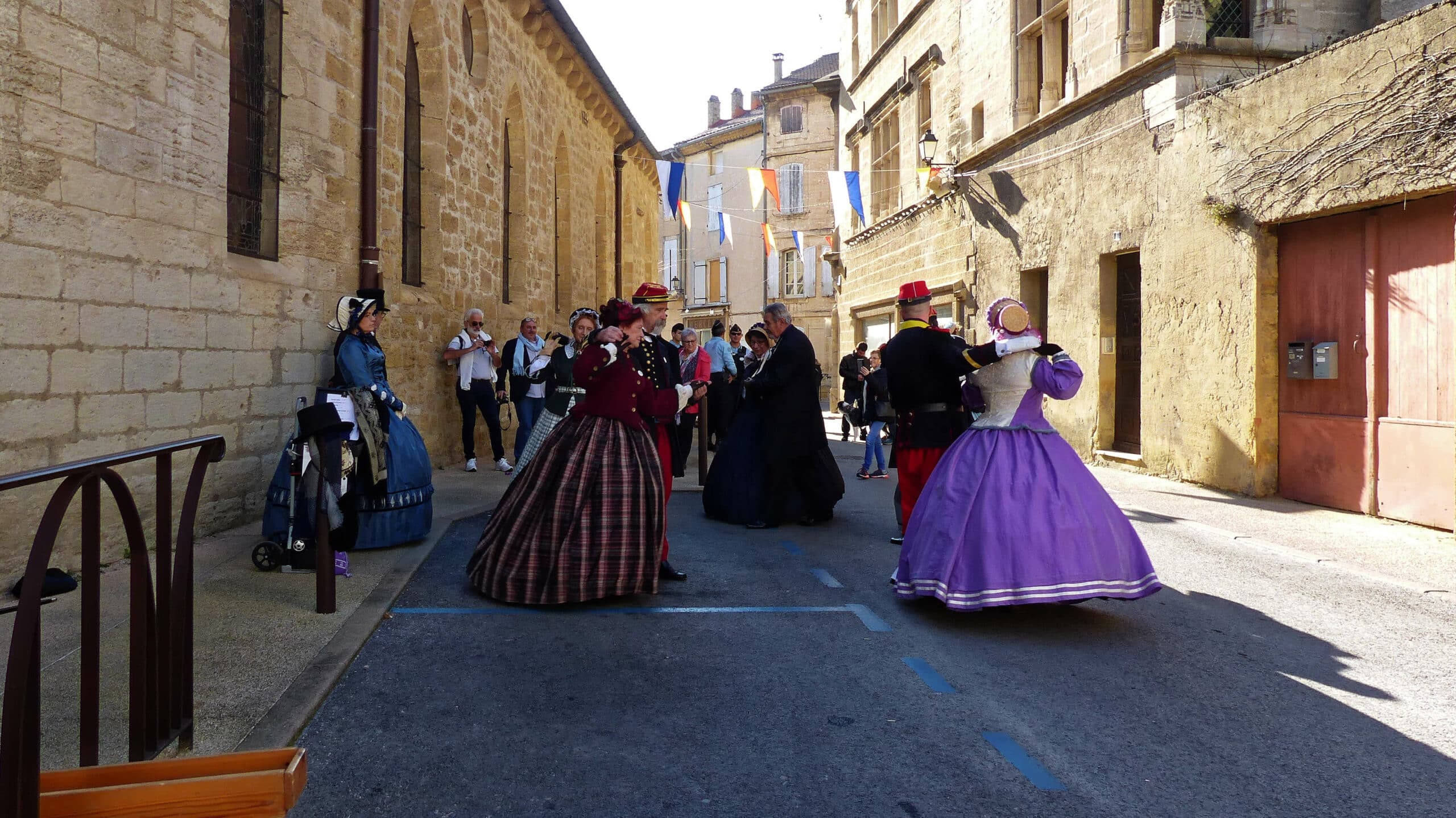 En soirée, nous participons au repas dansant organisé, chaque année, par la ville. Des couples en costumes d’époque étaient déjà sur la piste de danse et s’en donnaient à coeur joie dans leur passion. Un concours a récompensé le couple de meilleur danseur