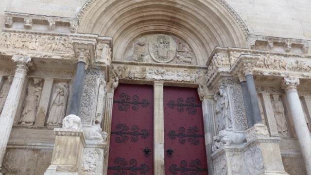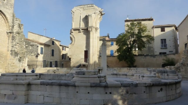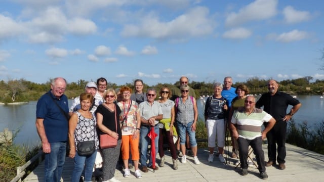 Mardi 18 : Nous dirigeons ensuite vers la magnifique Eglise ABBATIALE SAINT GILLES -Nous faisons une visite guidée des lieux, et apprenons beaucoup de choses dont la venue, ici, de Charlemagne, et avons vu le “TOMBEAU de Saint GILLES” situé en sous sol. Nous sommes surpris de voir que l’Abbatiale était beaucoup plus grande que ce que nous la voyons depuis l’intérieur. En effet, la guide nous amène à l’extérieur, et nous montre les “ruines” d’une partie de l’édifice qui était immense. A l’instar d’autres édifices religieux romans, la façade de l’Abbaye peut être considérée comme un véritable “livre de pierre” à destination des fidèles souvent illétrés à l’époque de son édification. Réalisée entre 1120 et 1160 par sans doute cinq ateliers différents comme le montgrent les variations de style, la façade demeure un chef-d’oeuvre reconnu d’art roman provençal, malgré ses nombreuses détériorations. La belle façade de Saint Trophinde d’Arles en est sans doute inspirée. -Déjeuner dans les C.Cars, et direction du pont de Gau.