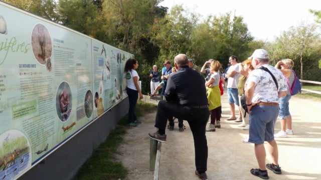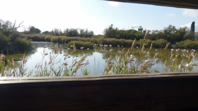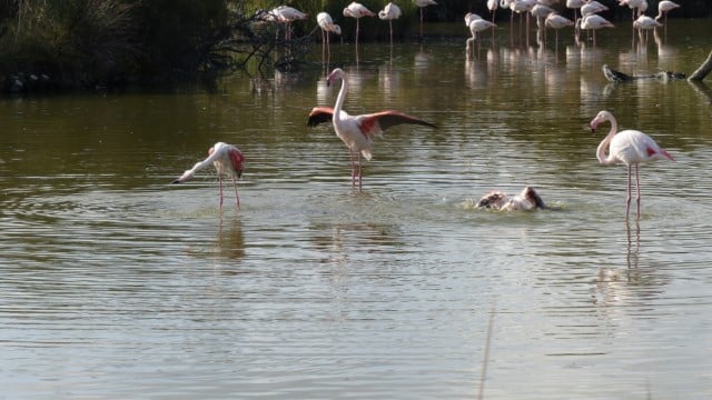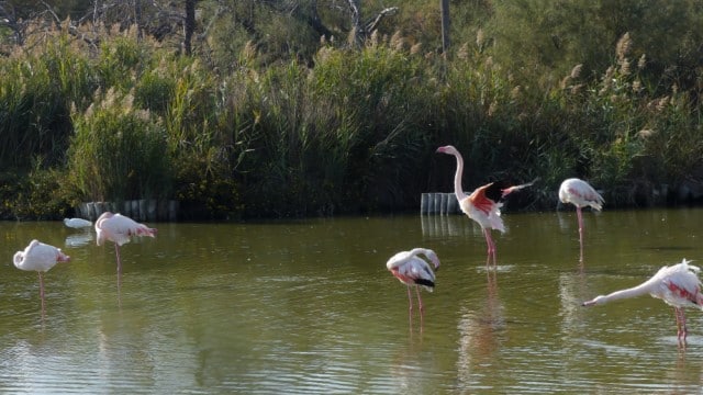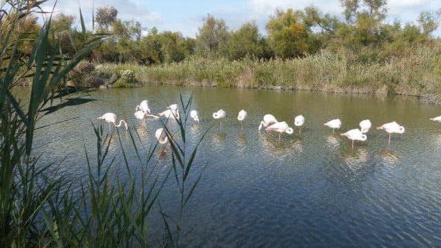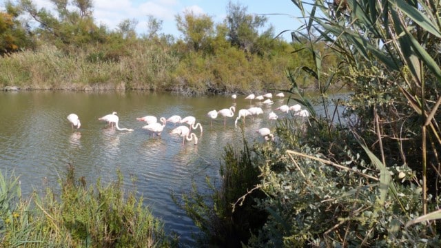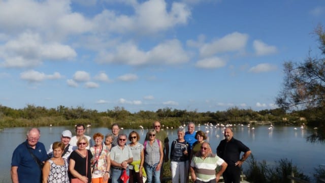 Où nous découvrons le “Parc Ornithologique du pont de GAU”. Ce Parc est le site idéal pour découvrir, observer et photographier de nombreuses espèces d’oiseaux, dont des centaines de flamants roses, dans leur milieu naturel. Étang, marais, pelouses, roubines, roselières et sansouïres forment ce vaste espace de 60 hectares entièrement consacré à la découverte de la nature et des oiseaux de Camargue. C’est par les sentiers du parc, où seul le chant des oiseaux vient interrompre le silence des lieux, que l’on peut observer, d’encore plus près, des oiseaux qui semblent totalement nous ignorer. Très agréable balade. Nous nous dirigeons ensuite à l’Aire de C.Cars ” Le poisson d’argent près d’Aigues-mortes, où nous passons la nuit