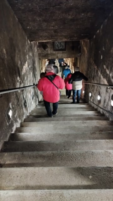 Samedi 18 : Départ vers 9h30 pour TERRA VINEA. à 10h30,  Nous visitons les sanciennes caves bien aménagées avec un accès en montée avec le petit train, (par le passé ce lieu produisait du plâtre avant de devenir une cave). A 12h00- Repas dans la belle salle du restaurant, qui nous a déjà servi lors de précédentes A.G.